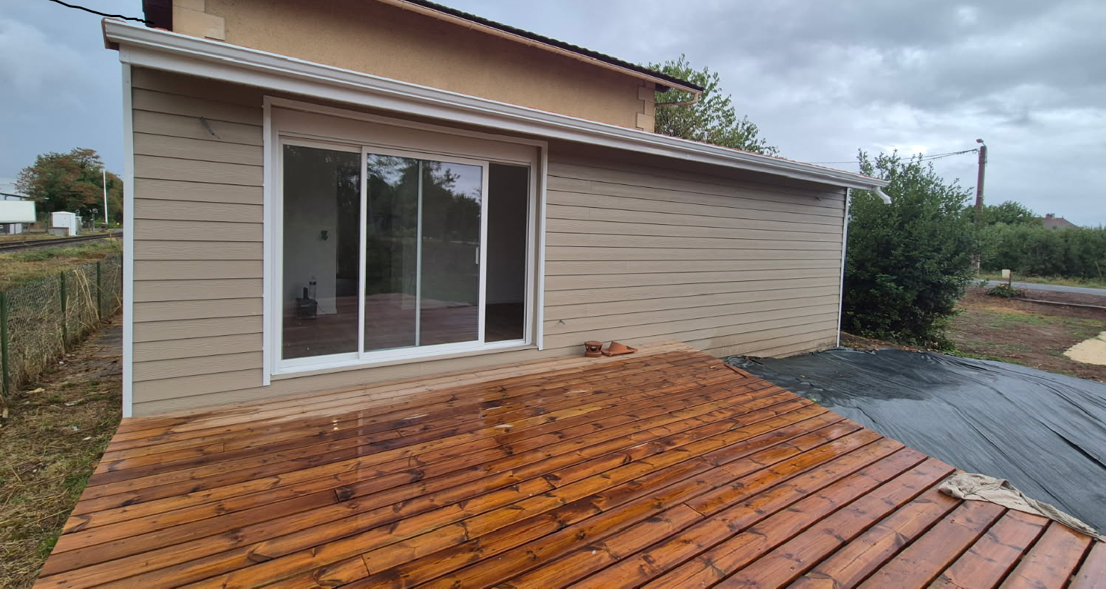 Libre 01/10/2025 Bergerac Ouest 10 mn Ancienne Maison de Gare rénovation complète de 2025, au goût du jour : grand séjour ossature bois avec grande baie vitrée, cuisine équipée et aménagée, chambre, salle d'eau et wc. Etage 2 grandes chambr