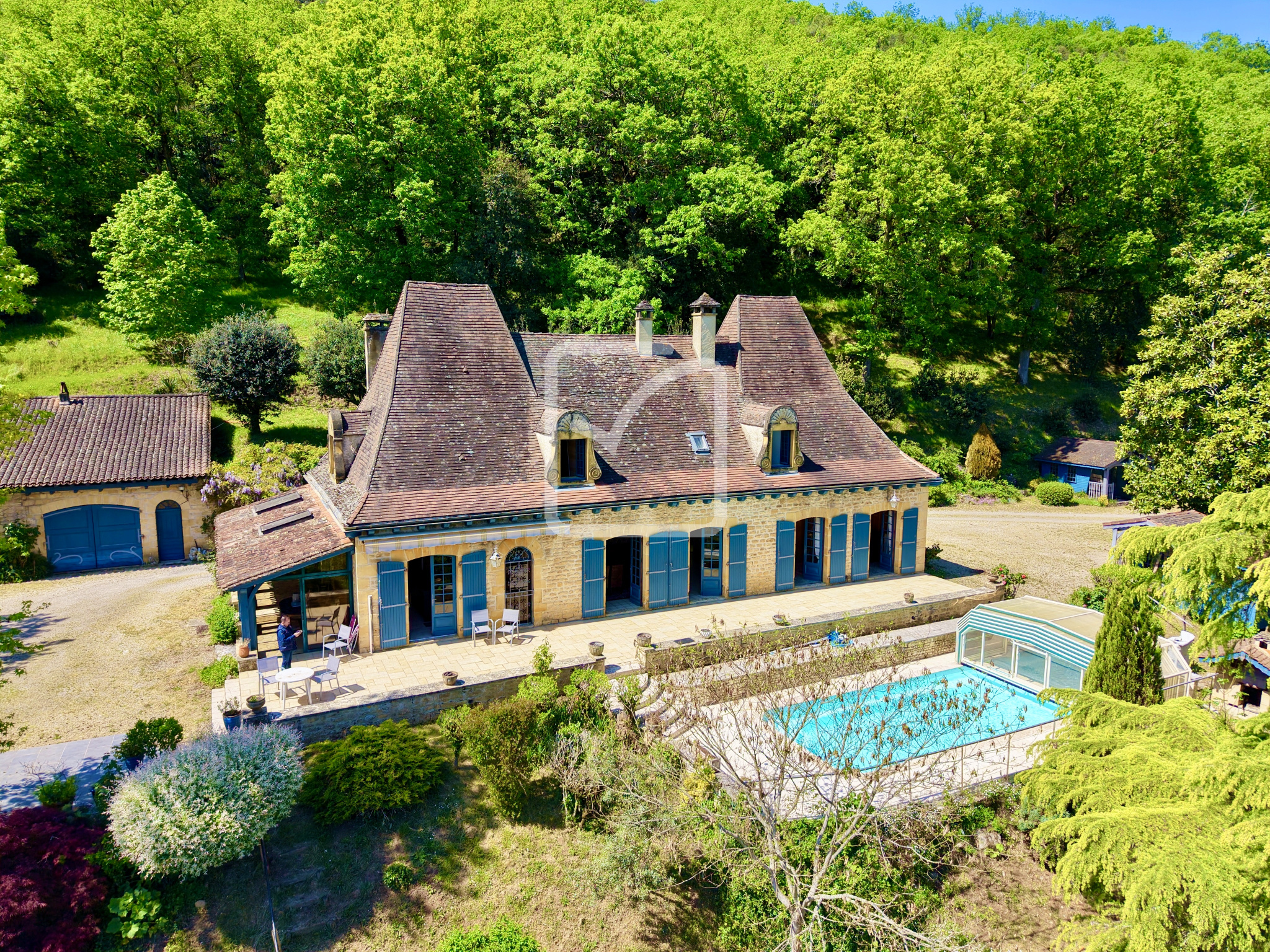 Demeure périgourdine d'exception de plus de 300 m2 habitables Terrain boisé de 2,3 ha avec dépendances, piscine et vue magique . Bienvenue au coeur du Périgord Noir, territoire d'histoire et de r