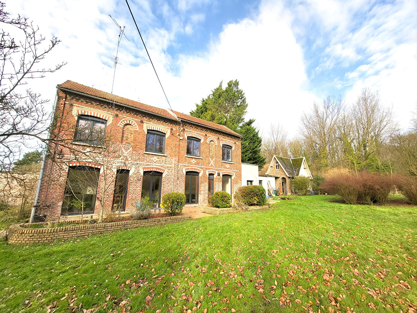 Axe CAMBRAI CAUDRY Propriété avec 2 habitations 1ère habitation individuelle de 107 m², séjour, cuisine avec ilôts, une sdb, un w.c. Etage : Palier, 2 chs, salle d'eau, un w.c., un grenier. Cave, volets électriques, remise, pigeonnier, C/C gaz