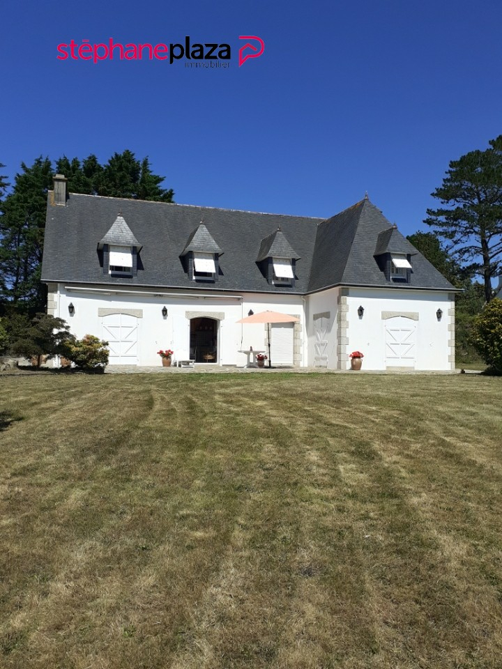 Pouldreuzic Belle maison avec 3 chambres + mezzanine, terrain et garage Dans un cadre verdoyant et paisible, cette agréable maison vous séduira par ses volumes et sa fonctionnalité. Au rez de chaussée elle dispose d'un séjour lumineux avec cui