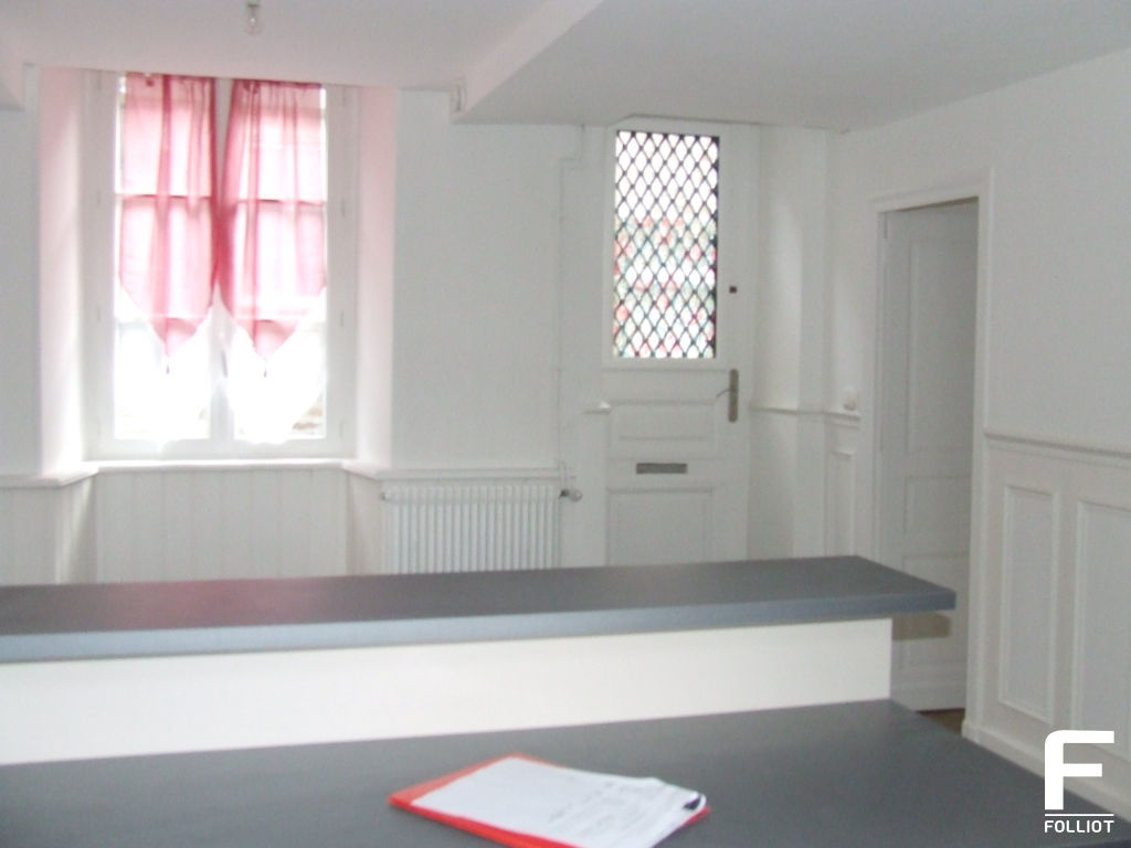 A LOUER - Maison de bourg, mitoyenne deux côtés, offrant 158 m² de surface habitable et comprenant : Au rez-de-chaussée : séjour avec poêle à granulés, cuisine aménagée et partiellement équipée (piano de cuisson et lave-vaisselle), sé
