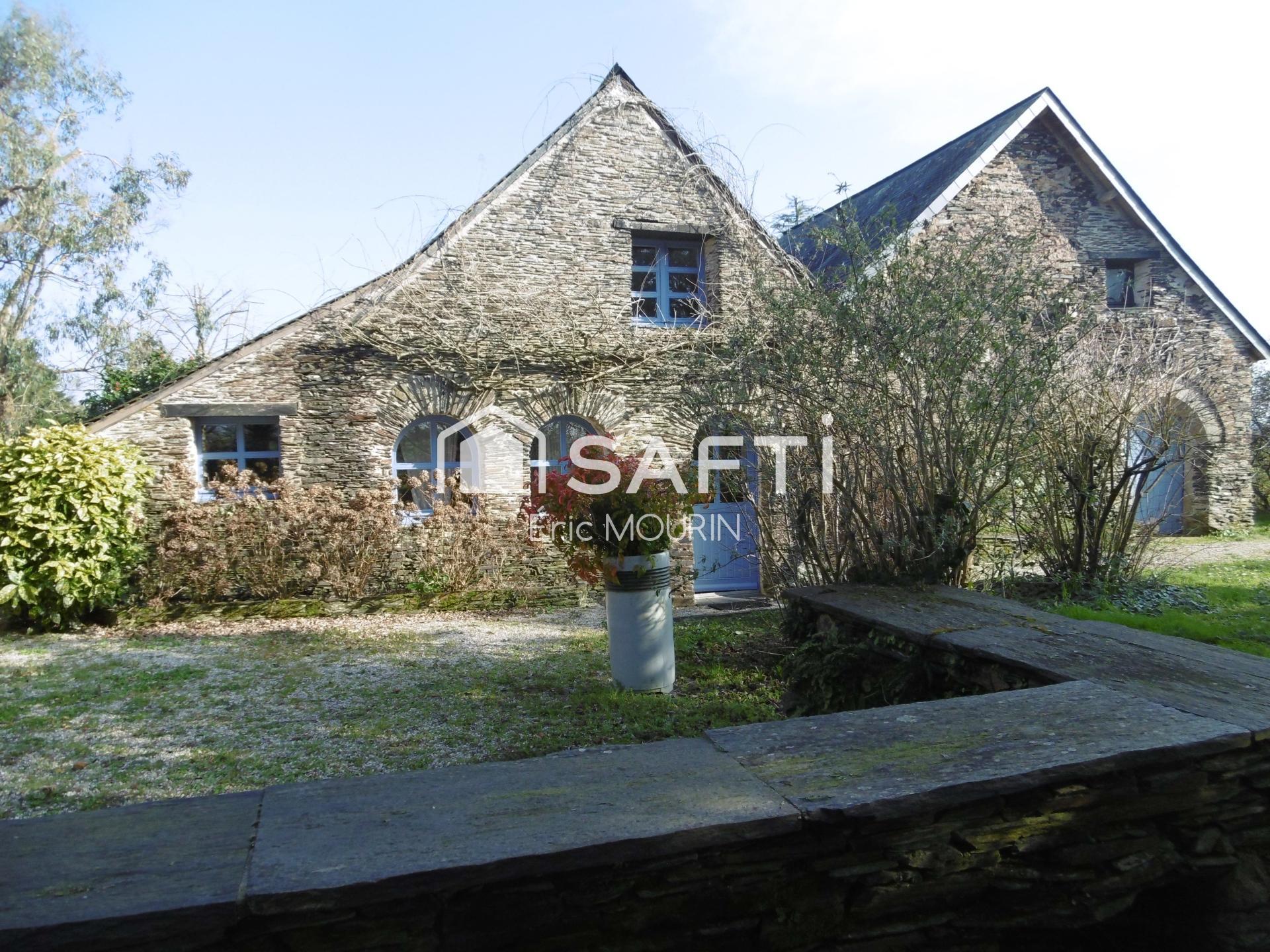 Très belle propriété s'inscrit dans un environnement paisible à la campagne, offrant calme et sérénité. À proximité, l'on trouve des commodités telles qu'une école, une crèche, proche de toutes commodités idéal pour les familles, situé à 30 minutes d'Ancenis, 45 minutes d'Angers, Nantes et 1h de Rennes. Le bien bénéficie d'un parc paysager soigné, d'une piscine à l'abri des regards et des places de parking, offrant un stationnement aisé.L'ensemble immobilier se compose de tr