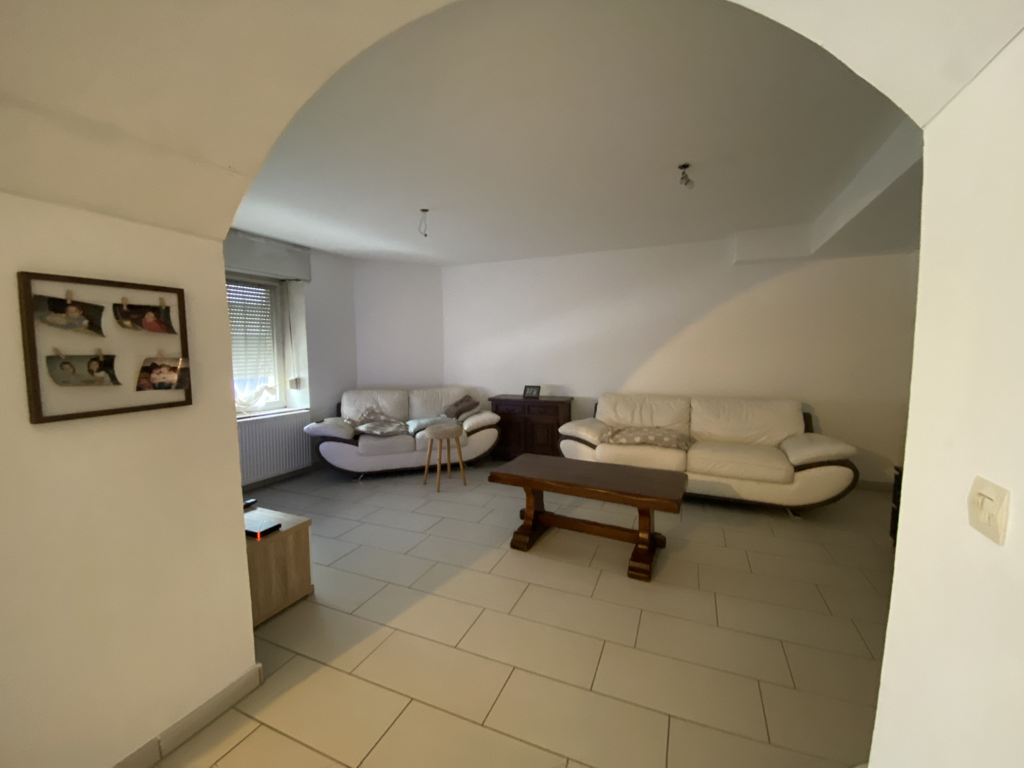 Située dans une impasse au calme, à Merten, à seulement quelques minutes de la frontière allemande, cette maison individuelle développe une surface habitable de 93 m² sur une belle parcelle de 648 m². Elle se compose d'une entrée, d'un séjour double lumineux avec accès direct à la terrasse, d'une cuisine, de trois chambres, d'une salle de bain et d'un WC le tout de plain-pied. Une cave avec garage complète ce bien, offrant un espace de rangement et de stationnement appréciable. La