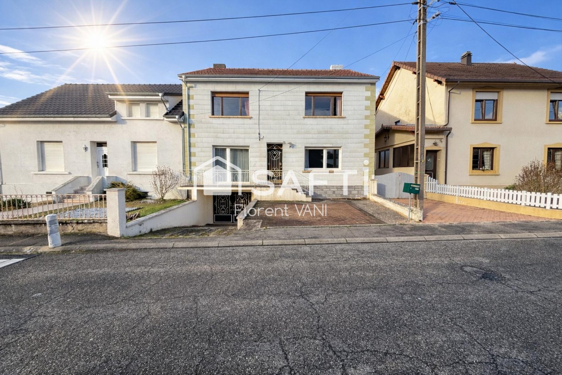 Iad France - Domenico Mazza vous propose : Maison individuelle avec potentiel située à Falck, commune appréciée pour sa qualité de vie, sa proximité immédiate des frontières luxembourgeoise et allemande, ainsi que pour la présence de commerces, écoles et services.Le bien développe une surface habitable d'environ 114 m² et est implanté sur une parcelle de 526 m². Il se compose actuellement de trois chambres à coucher, avec la possibilité d'en créer deux à trois supplémentaires