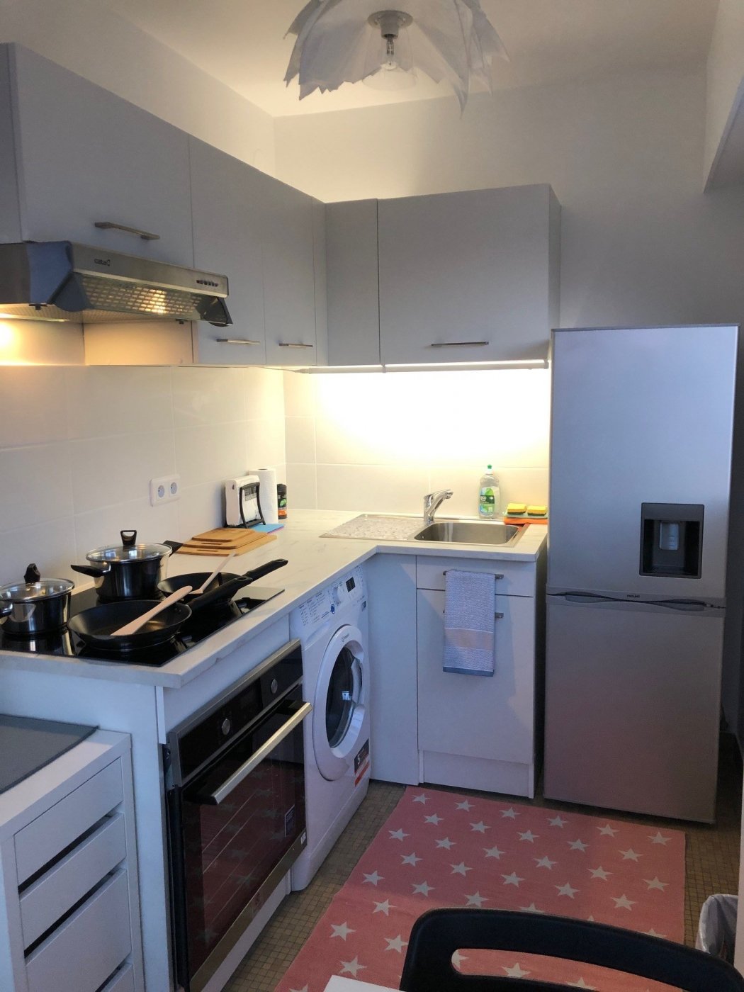 Au 11 rue Erard 75012 Paris -Appartement F1 de 32 m² et terrasse de 20m² avec une belle vue, 7ème étage avec ascenseur. L'appartement composé de: entrée avec des placards, un séjour, balcon, placards, une grande cuisine dinatoire, aménagée et équipée; salle de bains avec WC. Ce bien est refait à neuf. Chauffage et eau chaude collective. Parquet. Gardien.