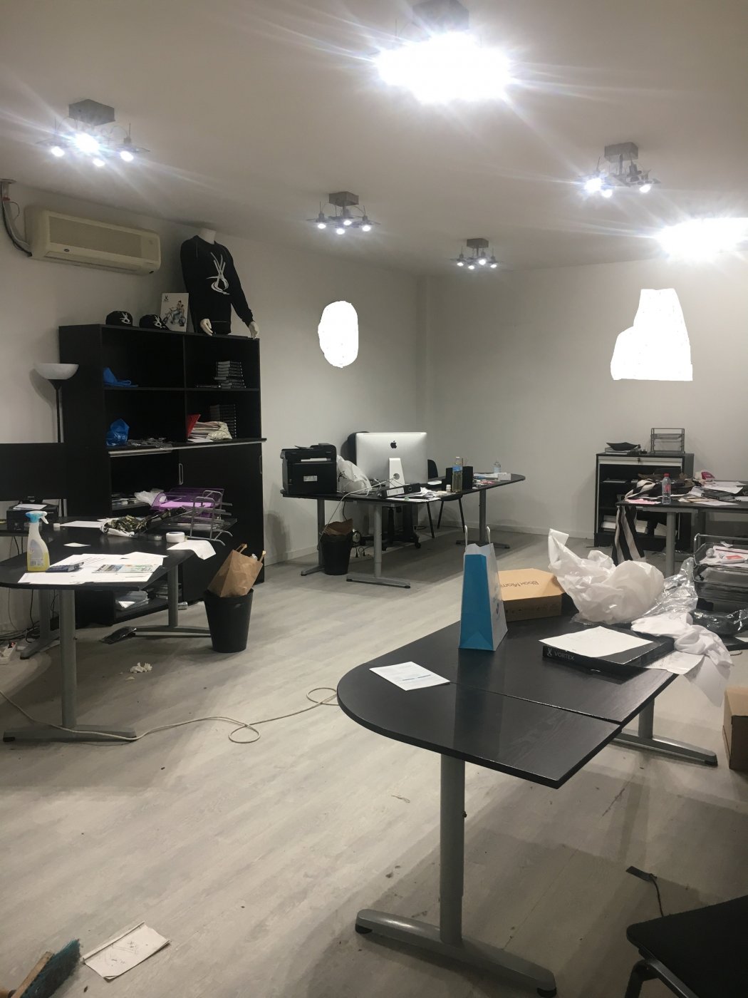 Locaux comprenant une zone de stockage/activités et bureaux disposant aussi d'une cuisine séparée, WC et climatisation.