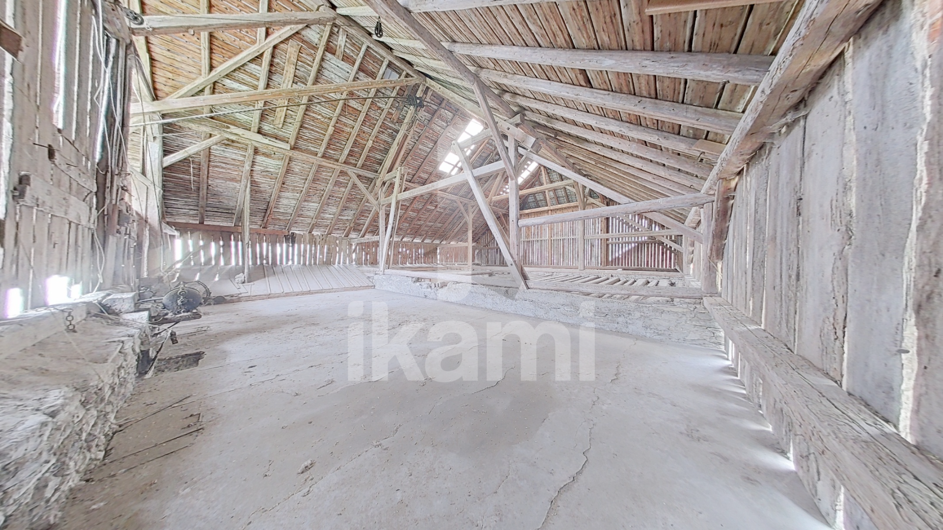 Au sous-sol, trois caves dont deux voûtées, pour une surface totale d'environ 69 m2. Au rez-de-chaussée, deux pièces (anciennement cuisine et séjour), une pièce avec accès au balcon exposé Sud-Ouest, et une étable en demi-niveau, pour une surface totale d'environ 126 m2. Au 1er étage, un plateau de 177 m2 avec hauteur sous plafond d'environ 9 mètres et poutres apparentes, offrant la possibilité de créer un loft avec ambiance montagnarde.