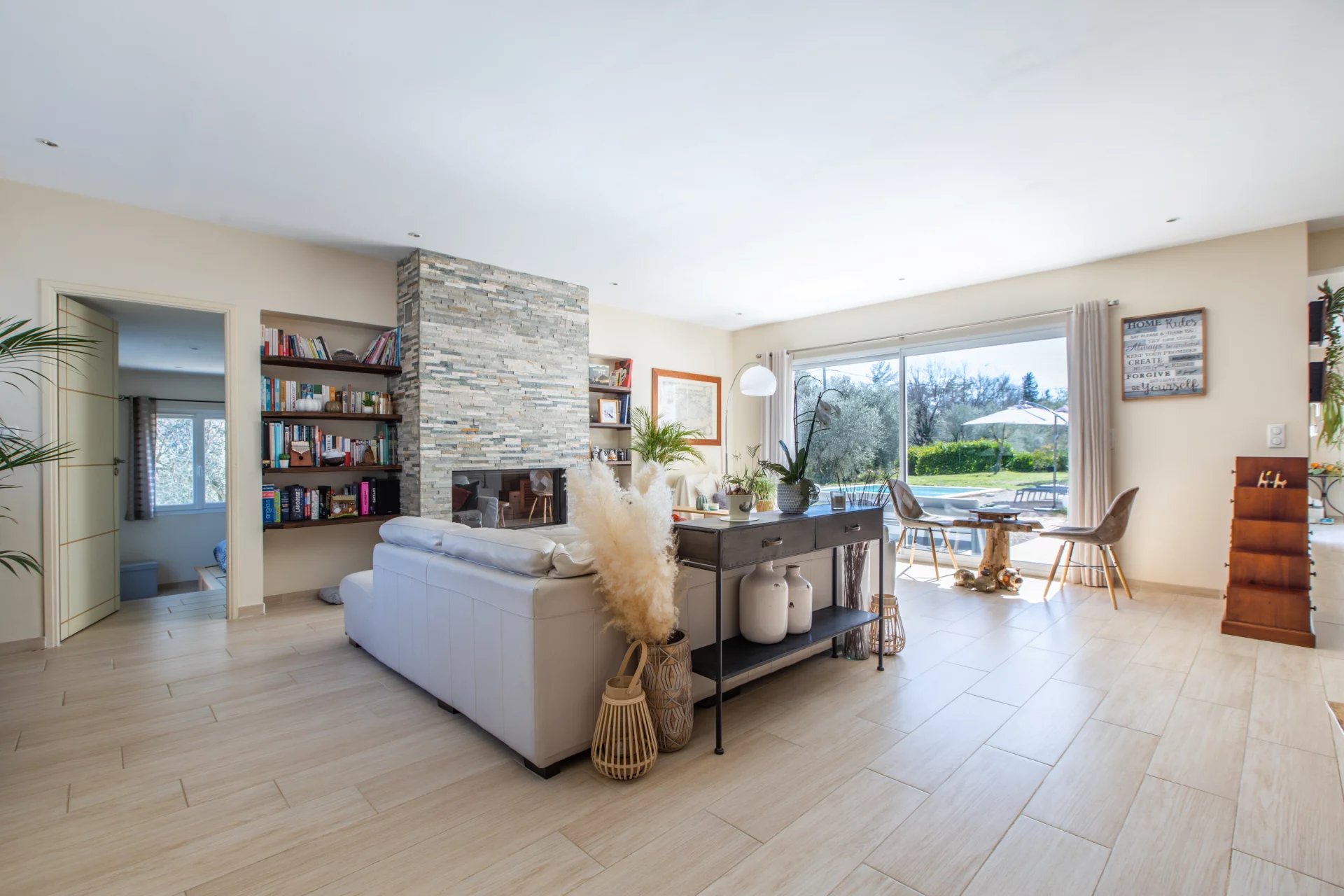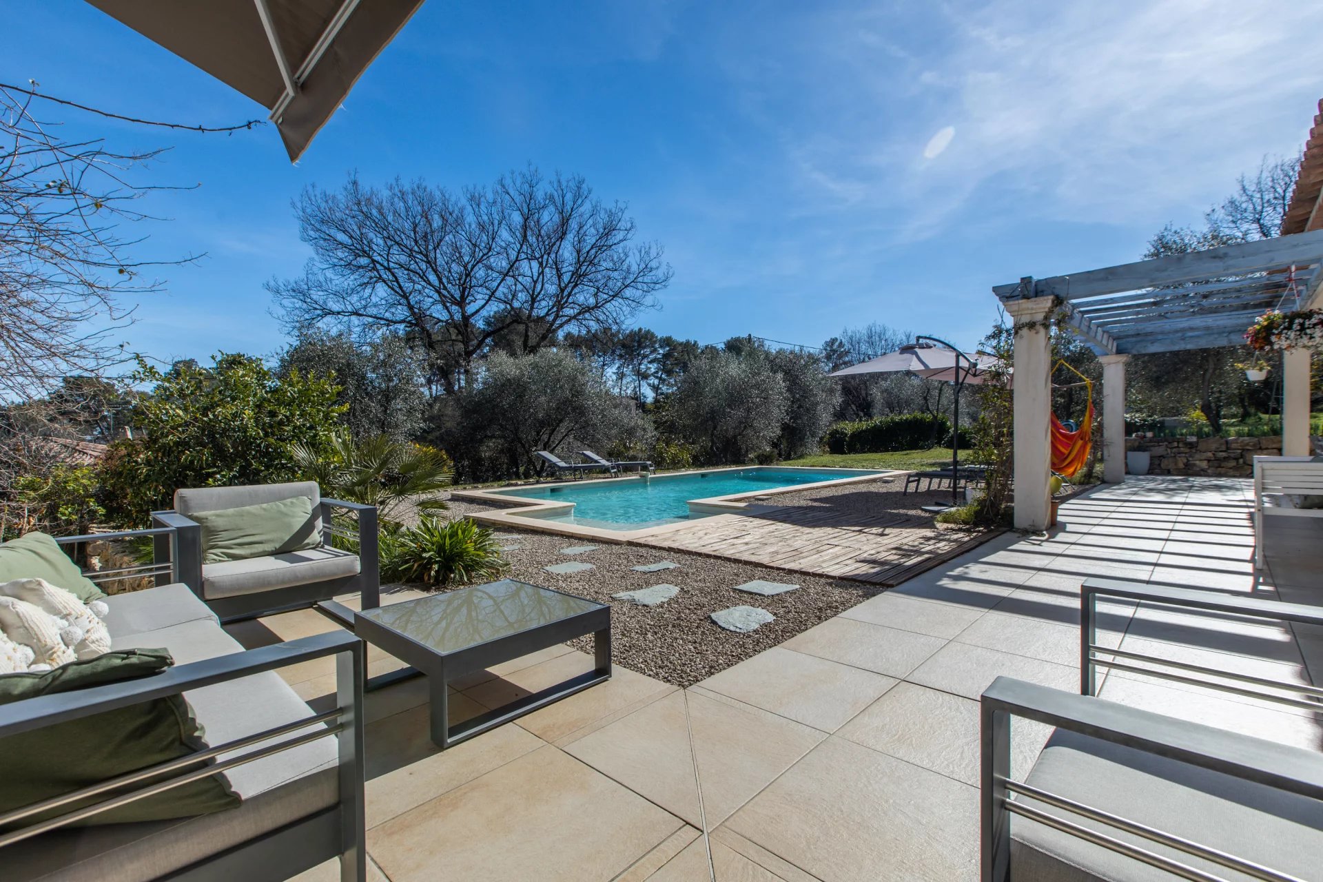 Retour à la vente!! Exclusivité,Le Rouret, limitrophe Roquefort les pins /Opio, a vendre magnifique villa de 196 m2 sur terrain de 3700 m2,située au bout d'une impasse au calme absolu. Cette villa récente datant de 2011, vous séduira par sa décoration de charme aux tonalités neutres et reposantes ainsi que par sa luminosité, ses belles ouvertures donnant sur la piscine et la verdure avoisinante, sa cheminée, ses beaux volumes et emplacement d'exception. Elle se compose d'un salon de 60m2 ouvrant sur la piscine et le jardin, d'une master room et de 3 autres chambres, d'un studio indépendant, d'un garage, piscine et terrasse. Fosse septique aux normes et conformité pour cette belle villa. A visiter sans tarder au afin d'apprécier le calme et la zénitude qui y règne.