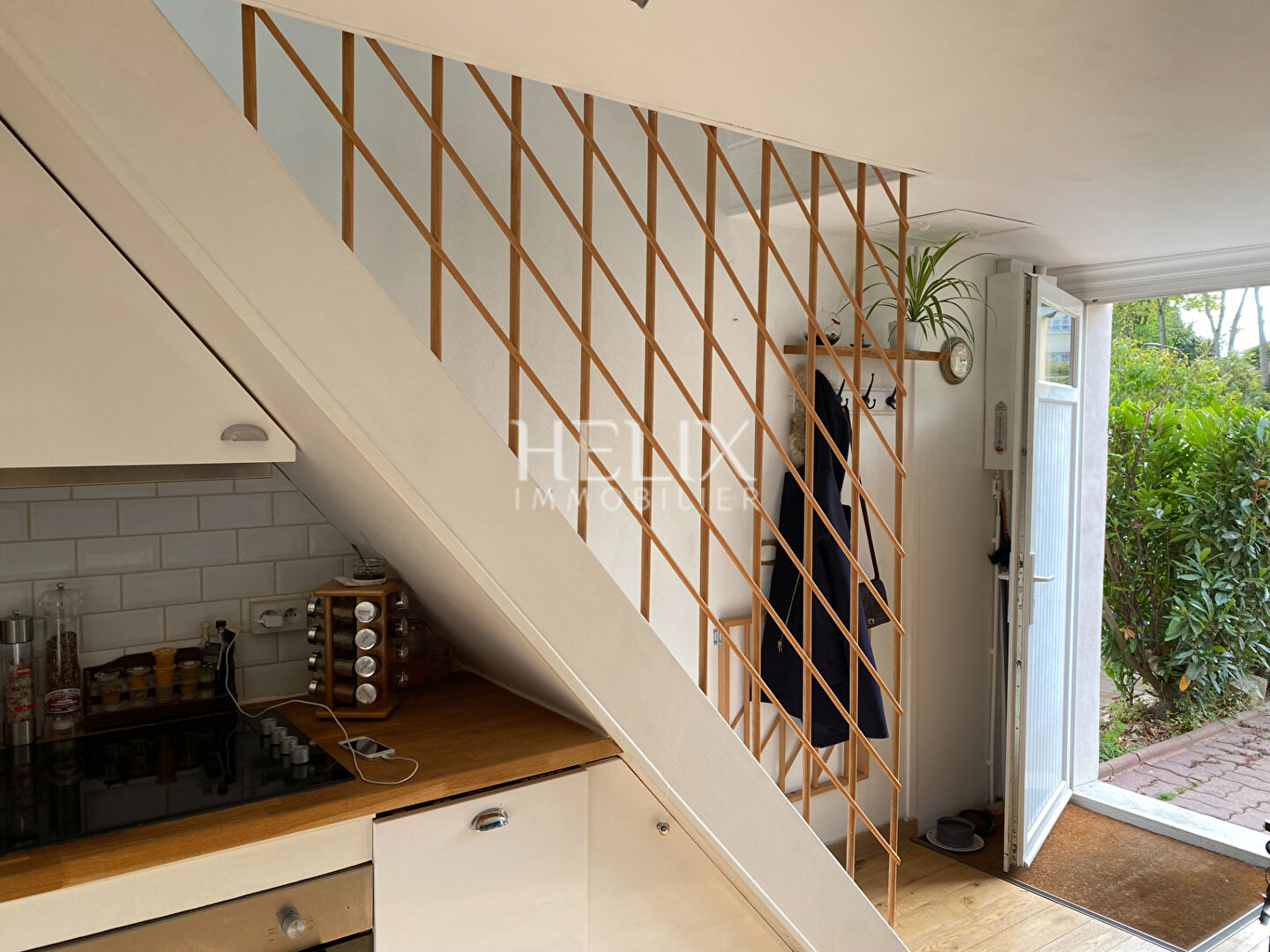 Le Pecq / limite Saint Germain en Laye Idéalement située sous les terrasses de Saint Germain, Helix immobilier vous propose cette charmante maison de ville des années 30 dans en excellent état général sur 2 niveaux et combles. Le ravalement avec isolation et la toiture ont été rénovés cette année. Une fois la coquette cour de la copropriété passée, on découvre au RDC un séjour cosy donnant sur une terrasse privative exposée plein Sud ainsi qu'une cuisine américaine aménagée. Au 1er étage, l'escalier dessert une chambre avec rangements, une grande salle de bains avec WC. Dans les combles, un bureau baigné de lumière de par ses nombreuses ouvertures pouvant également faire office de chambre d'appoint/d'enfant. Lumineux, calme, excellent état général. A proximité immédiate de toutes commodités. RER A 8 minutes à pied. Copropriété de 6 lots - dont 6 lots habitation. (). Charges annuelles : 824 euros.