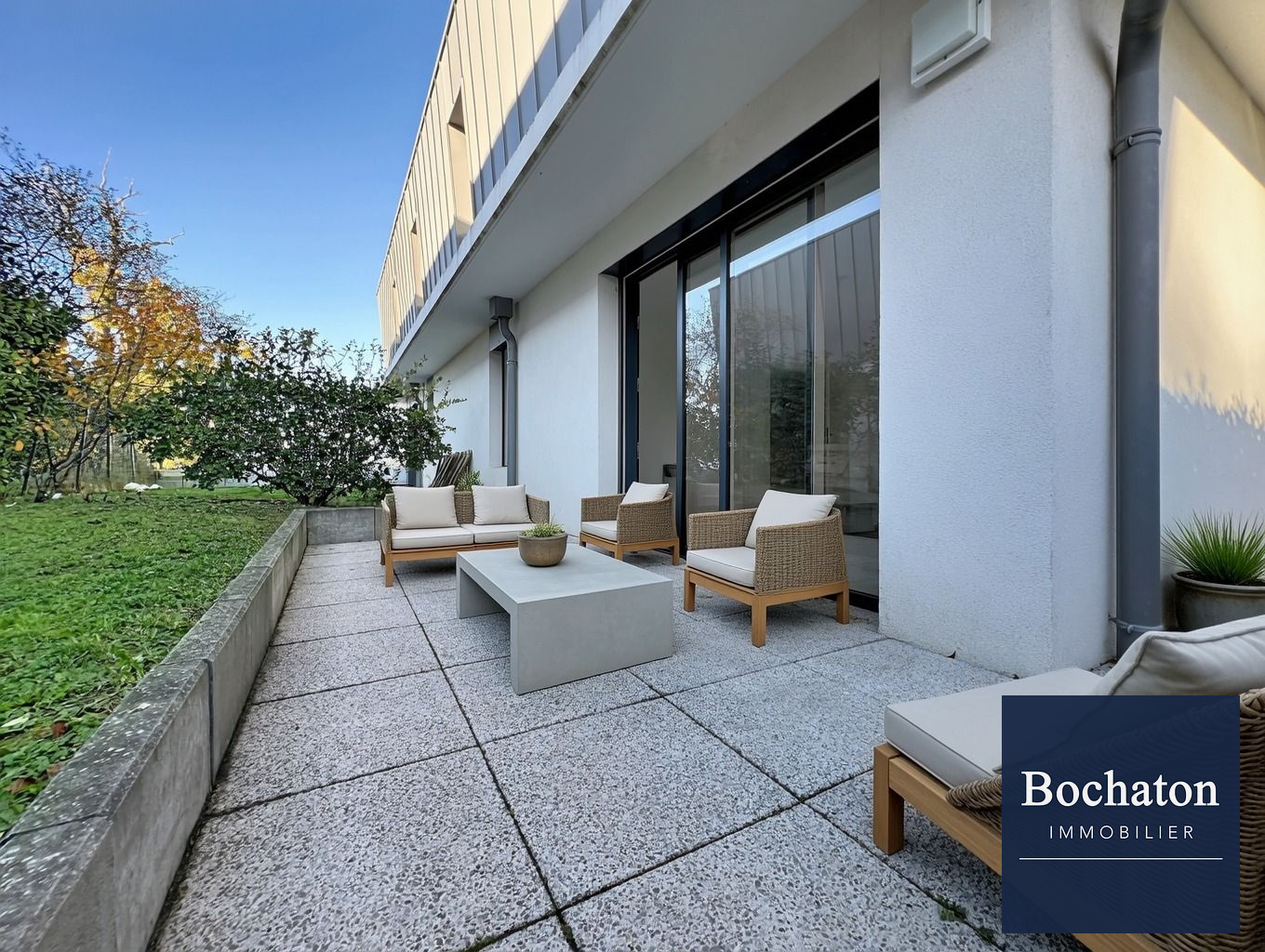 Dans une résidence de standing récente. Splendide appartement de type 2 pièces en rez-de-jardin très bien exposé. Cuisine ouverte sur un spacieux séjour de 26 m² bénéficiant d'une vaste terrasse d'angle ensoleillée avec jardin, 1 chambre, salle de bains et 1 garage en sous-sol sécurisé. A DECOUVRIR Agence BOCHATON IMMOBILIER 6 bis, avenue Jean Léger à EVIAN LES BAINS Tél: 04 50 75 64 80 evian@bochaton-immobilier.com