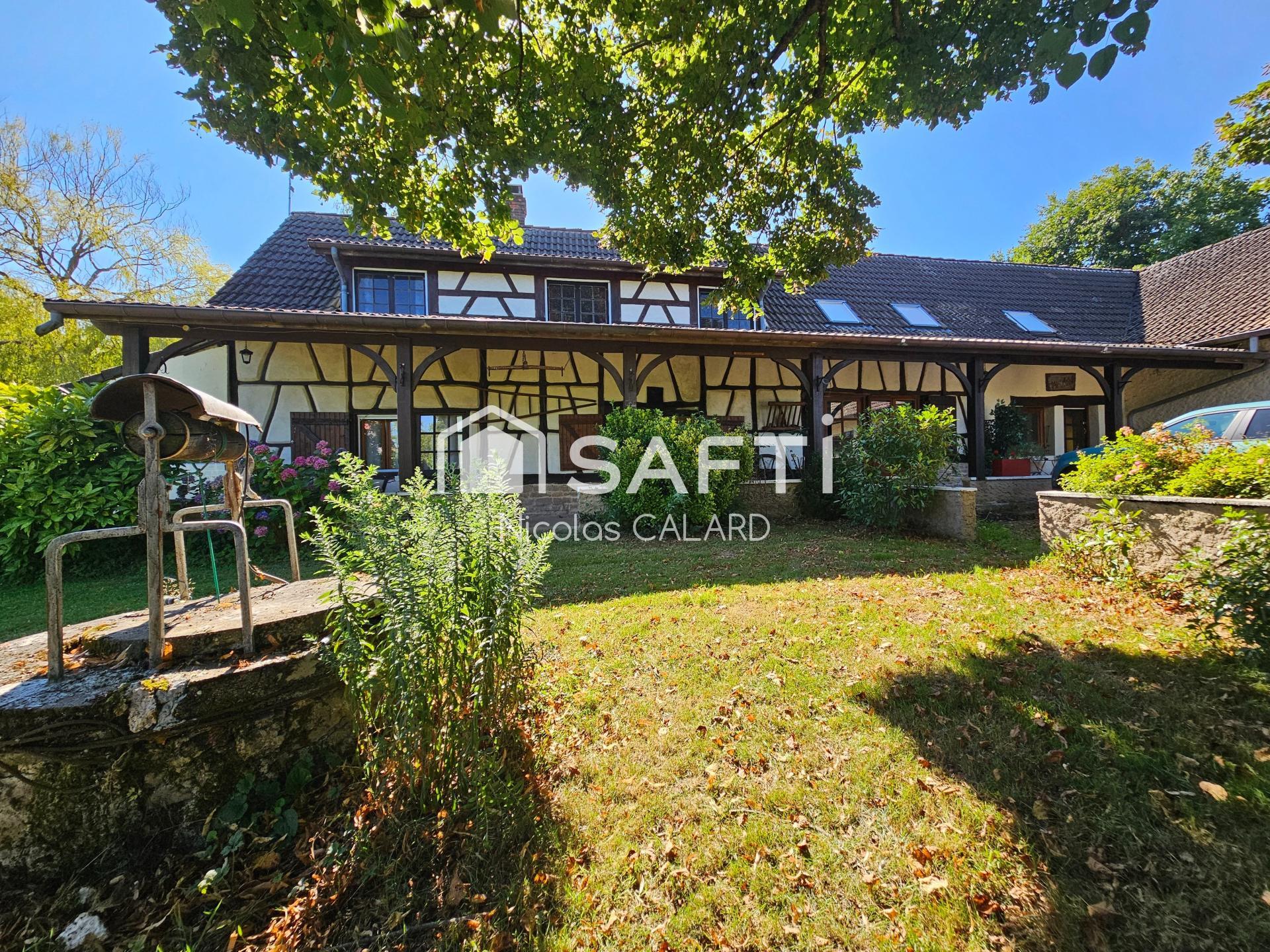 À vendre, située au bourg de l'Abergement Sainte Colombe, authentique ferme bressane à colombages datant des années 1850, située dans un environnement calme mais à proximité des commerces et écoles. La maison offre de beaux volumes et beaucoup de charme. De plain-pied, vous trouverez une entrée, un salon séjour avec insert cheminée, une cuisine indépendante équipée, une chambre, une salle de bain avec WC, un WC séparé, un bureau, un cellier buanderie et une cave. À l’étage, u