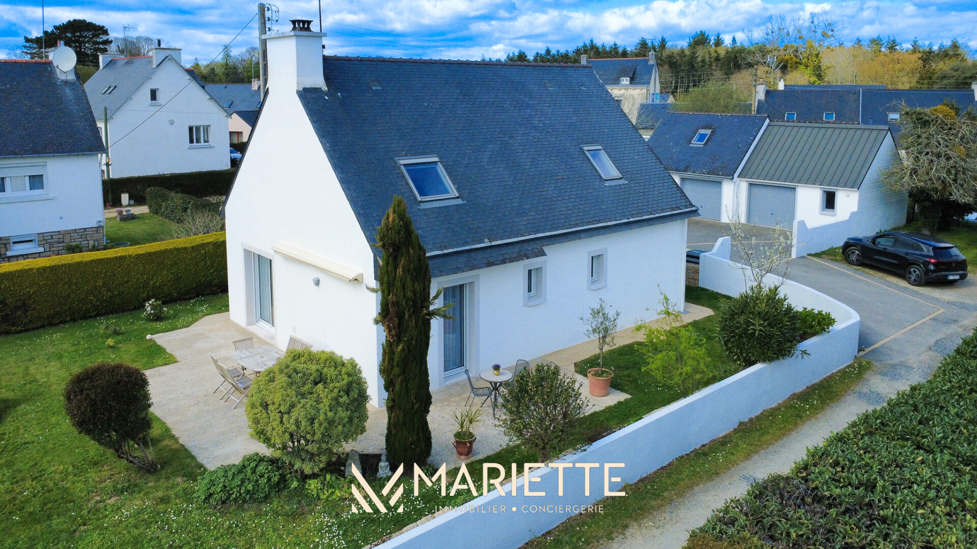 "AMARIS", Est cette maison située au bout d'une impasse paisible, à quelques minutes à pied du centre de Trégunc et de ses commerces, cette maison lumineuse offre un cadre de vie idéal. Avec une vie de plain-pied, elle s'ouvre sur un joli jardin arboré, avec une belle vue dégagée sur la verdure. La piscine s'intègre harmonieusement à l'ensemble, idéale pour profiter des beaux jours et recevoir en toute convivialité. Un lieu où l'on se sent bien, entre tranquillité, nature, et vie