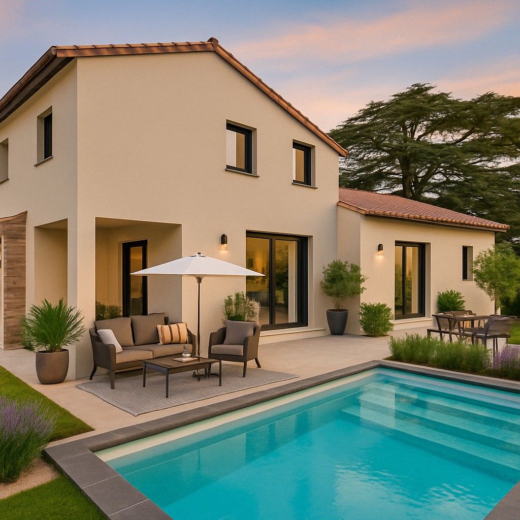 Bochu Immobilier vous propose en exclusivité une superbe villa contemporaine d'environ 150 m² habitables sur un terrain arboré de 1500 m², alliant confort, modernité et prestations de qualité. Située dans un environnement calme et recherché. Elle se compose d'un vaste séjour lumineux avec cuisine ouverte entièrement équipée, ouvrant sur la terrasse et l'espace piscine, pergola bioclimatique et deux stores bannes électriques. Une buanderie/cellier complète la partie jour.Au rez-de-c