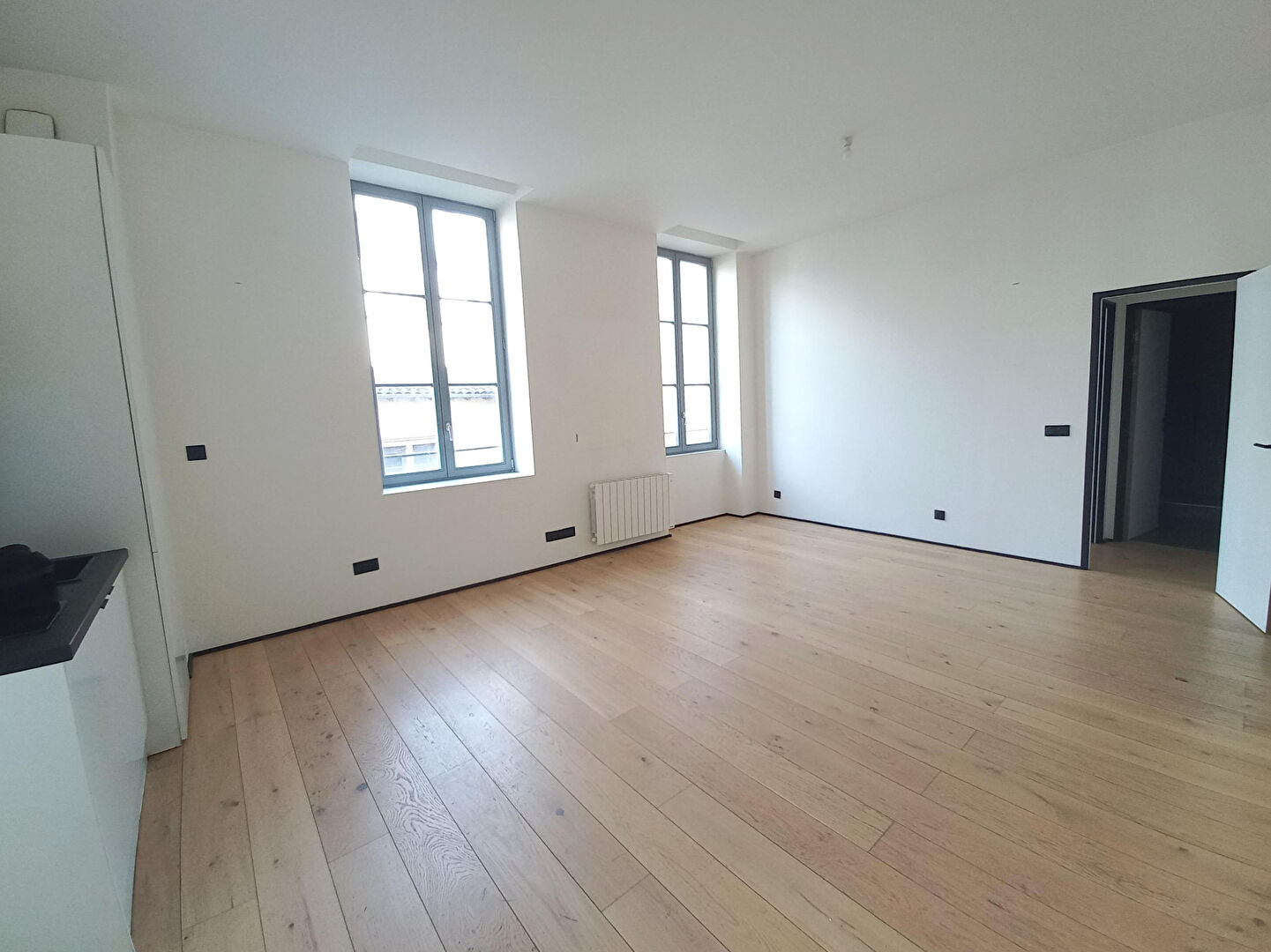 Idéalement situé dans le haut des Pentes du 1er arrondissement, à la frontière de la Croix-Rousse, cet appartement T3 entièrement rénové prend place au deuxième étage avec ascenseur d'une copropriété bien entretenue, nichée dans une rue confidentielle et au calme, à proximité immédiate des commerces et des transports. Dès l'entrée, les volumes et la luminosité donnent le ton. Traversant, l'appartement bénéficie d'une belle circulation de lumière naturelle tout au long de la