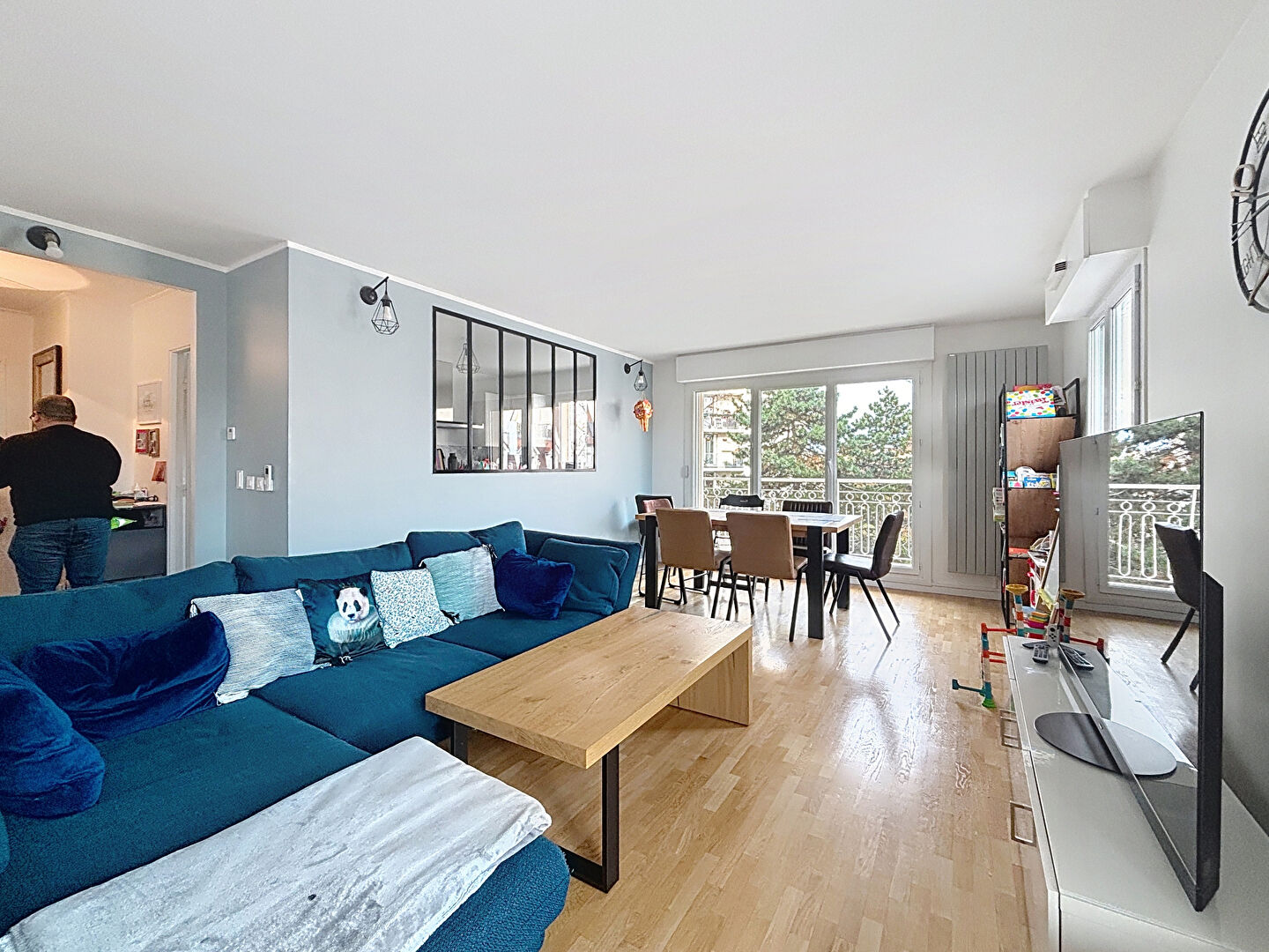 Dans une belle résidence verdoyante et situé à 5mn du centre ville et du Tram, bel appartement de standing offrant : Entrée avec placards, Cuisine équipée, Lumineux et grand double séjour sur balcon avec vue sur Paris, 4 chambres, salle de bains et salle deau, 2 toilettes indépendants , nombreux rangements. Parquets au sol. Cave et parking double. Excellent état. Pas de travaux à prévoir. Visitez vite !