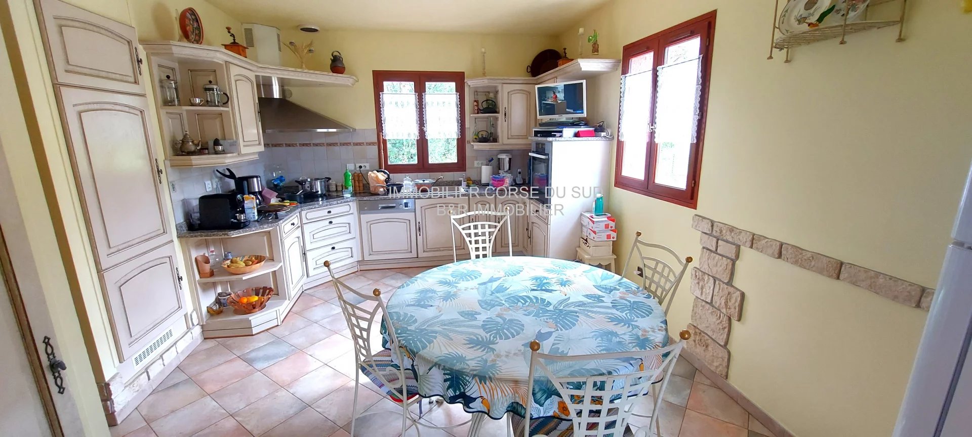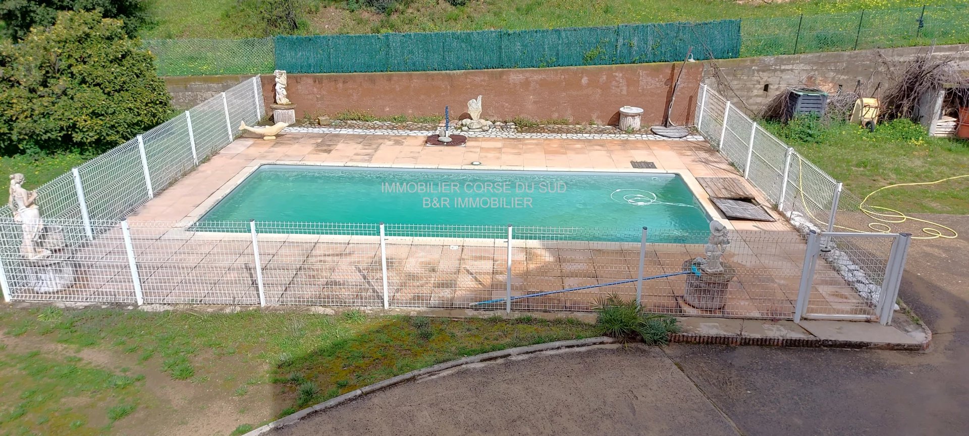 PORTICCIO en Corse du sud Villa T6 pour 187 m² avec piscine et garage individuel. Villa idéalement située avec belle vue dégagée mer/montagne sur le Golfe d'Ajaccio. Situation rare à la vente, au calme, à 3 minutes des commerces et la plage A VIVA du centre Porticcio. Avec une exposition Ouest, elle propose 2 niveaux : Au rez-de-jardin, un WC; un dégagement; trois chambres; terrasse couverte; une salle de douches; un WC et un studio indépendant. Son étage : un hall d'entrée; un WC; un salon/séjour donnant sur la terrasse; une cuisine équipée indépendante; une autre terrasse couverte; une chambre parentale et une salle de bains. Beau terrain plat de 1790 m², bien planté et clôturé avec une piscine et un garage individuel. Prestations : entrée de la propriété avec portail électrique; forage; piscine, garage individuel; chauffage par climatisation réversible; chauffe-eau/panneaux solaire. Copropriété de 36 lots, Charges de copropriété : 400 €/An, pas de procédure en cours. Cette villa de 1987 est très intéressante de par sa bonne situation, son beau terrain, sa surface et son bon été général, libre choix aux futurs propriétaires de la moderniser. Prix : 945 000 € TTC honoraires charge vendeur. Référence de ce bien : 84261646 Je demeure à votre disposition si vous souhaitez plus de renseignements ou organiser un rendez-vous afin de visiter ce bien, n'hésitez pas à me contacter au 06.60.03.52.15 Pascal MARQUETTE IMMOBILIER CORSE DU SUD B&R IMMOBILIER Agent commercial, RSAC Ajaccio n°394942080