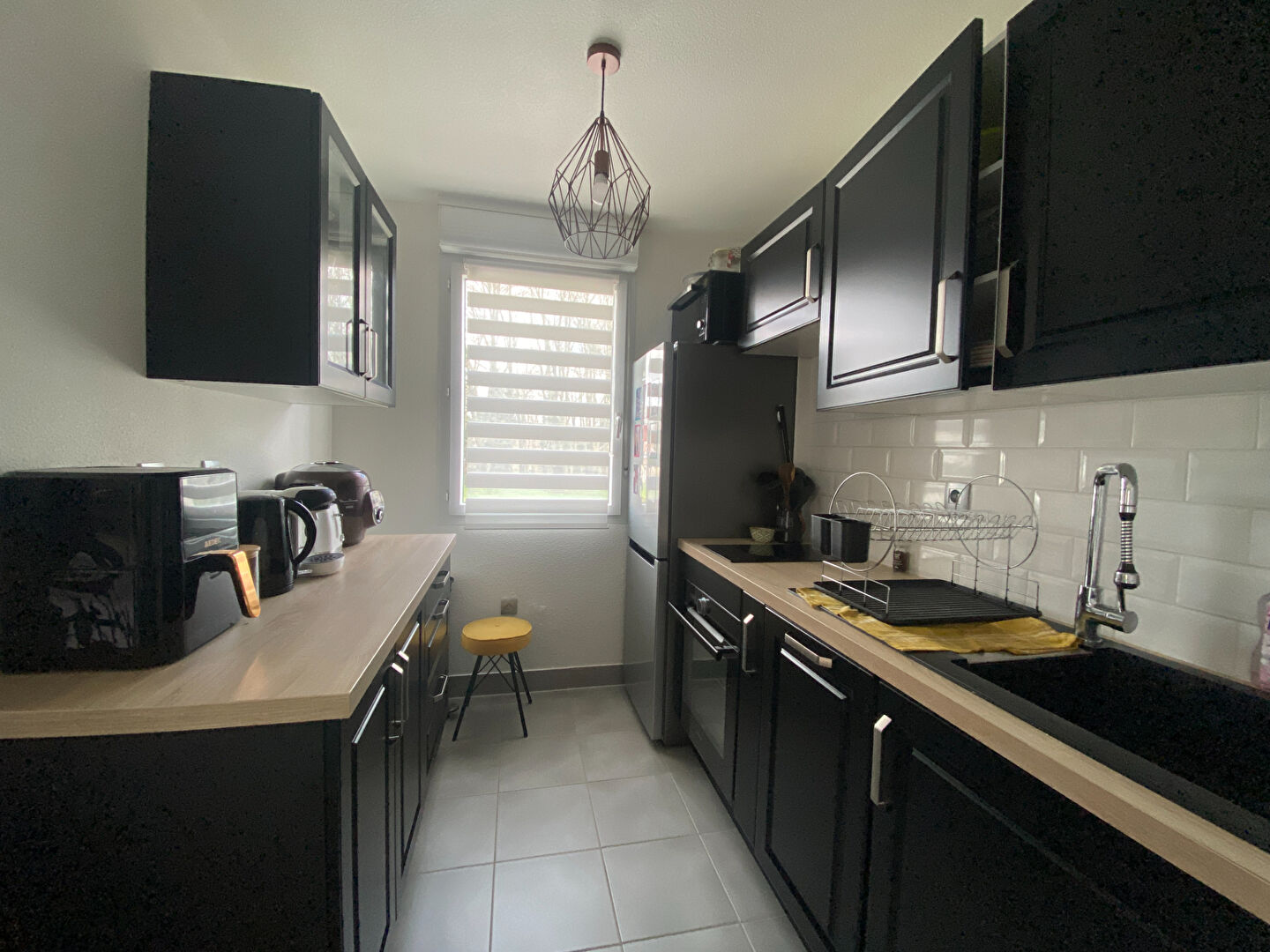 Proche de la fac des sciences, dans une rue calme, ce grand T1 est composé d'un pièce principale, une cuisine séparée, aménagée et équipée (réfrigérateur-congélateur, micro-onde, hotte , four et plaques de cuisson) et une salle de bains (avec un lave-linge) Facilité de stationnement gratuit dans la rue Loyer hors charges 300 euros Provision pour charges 100 euros (soumises à régularisation annuelle) Loyer charges comprises 400 euros Dépôt de garantie 300 euros Honoraires à la c