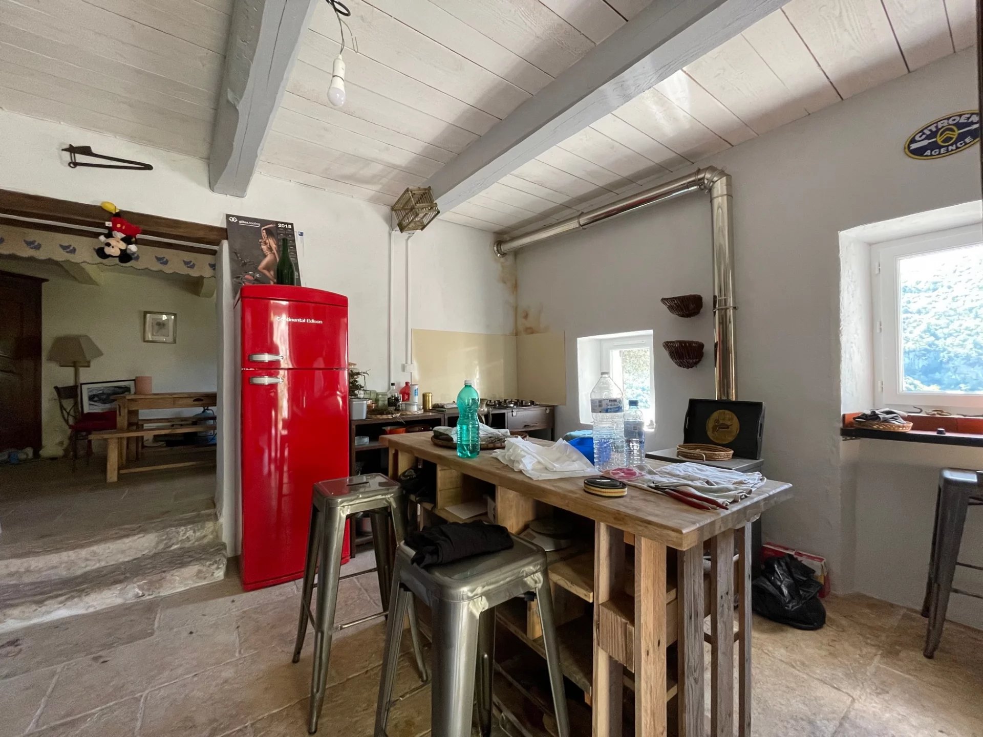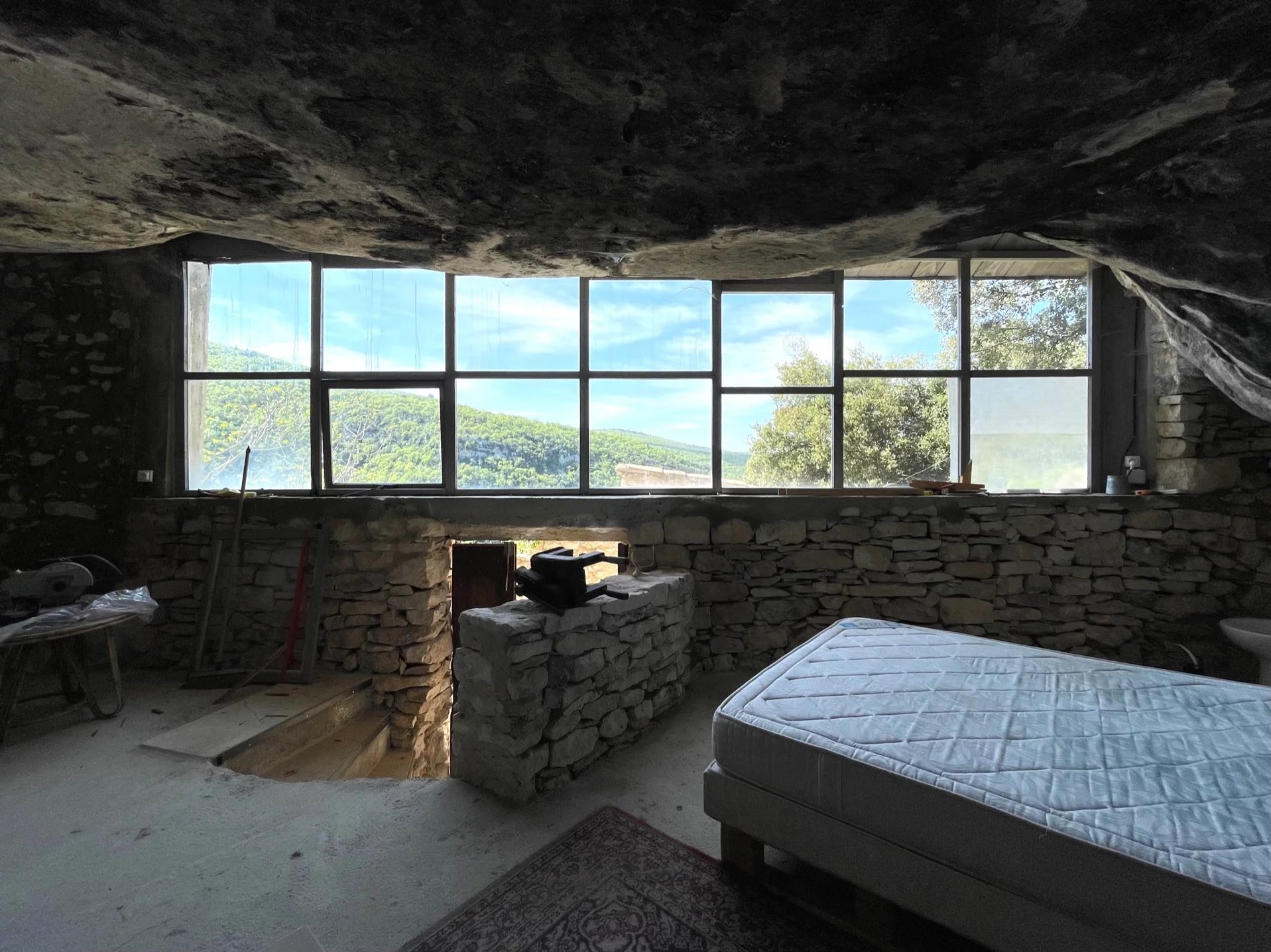 A 60 mn d'Avignon tgv, 15 d'un village avec commerces à l'année, Sud Mont Ventoux, lieu unique pour ce relais de poste XVII ème restauré à l'identique en 2015 sur environ 120 m² sur deux niveaux, semi troglodythique des Gorges dela Nesque ,3 chambres, 1 salle d'eau, cuisine, sale repas avec cheminée, autonome en eau et edf, toilette sèche, dépendances, cave sous roche, Idéal retour aux sources en pleine nature et en position dominante au Sud.