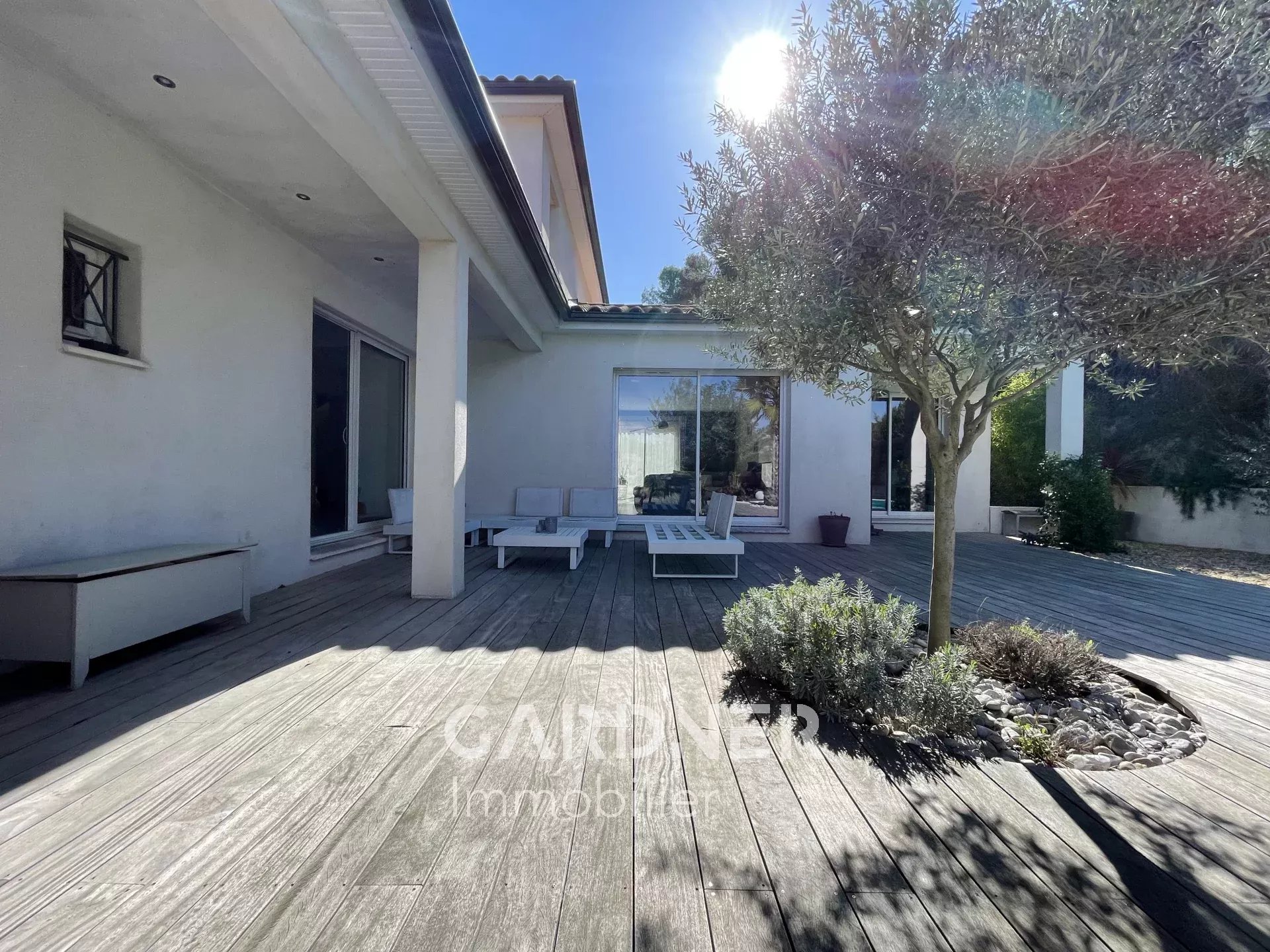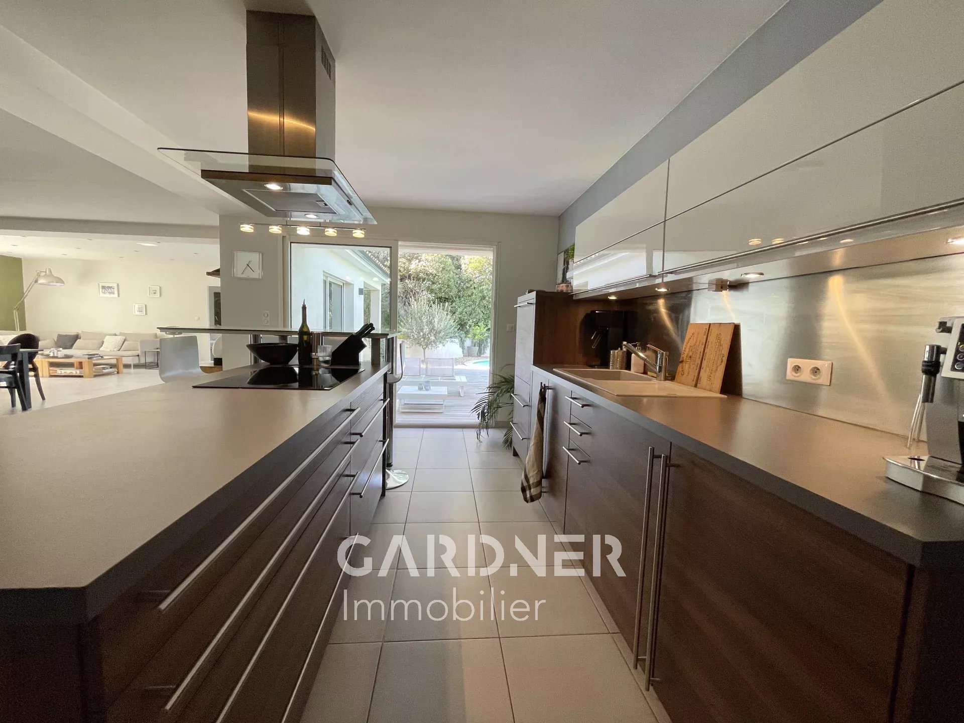 CARNOUX_EN_PROVENCE / Maison indépendante type 6 en R+1 de 180m2 habitable, dans un environnement calme et verdoyant. Pas de travaux à prévoir. La maison est en parfait étant NORMES BBC. DPE A. Faibles consommations énergétiques. Parcelle de 903m2. Elle se compose d'une entrée donnant sur séjour, salle à manger et cuisine ouverte toute équipée comptabilisant plus de 70m2 d'espace vie. 2 chambres dont une parentale. WC séparé. A l'étage, 3 chambres avec dressing, une salle de bains, WC séparé. Un garage de 39m2 et une buanderie de 6m2, viennent compléter l'ensemble. En extérieur, le jardin est parfaitement paysagé et amnagé d'une grande terrasse faisant face à la piscine. Taxe foncière 2200. Pas de charges. La maison n'est ni en copropriété, ni en lottissmeent.
