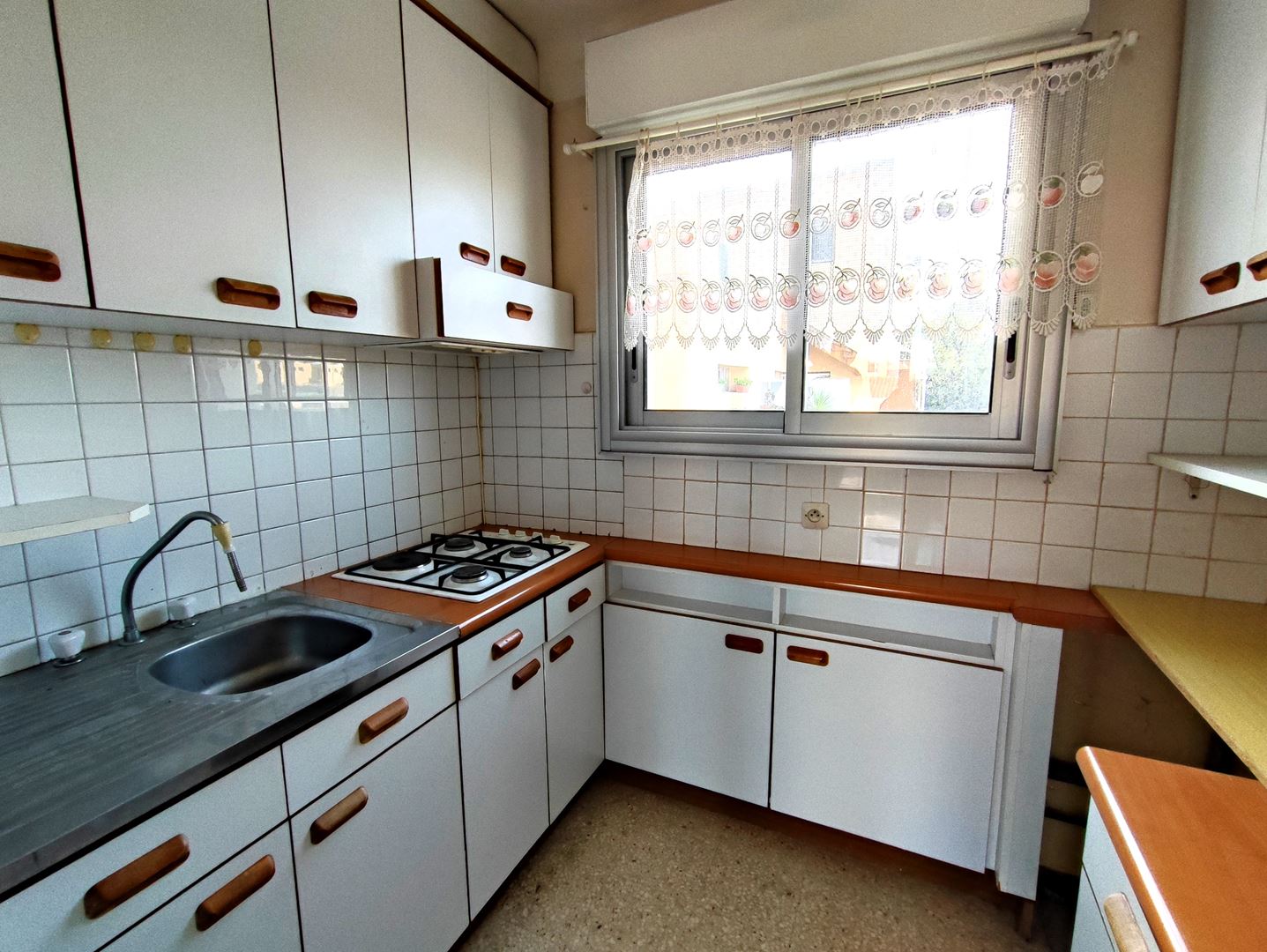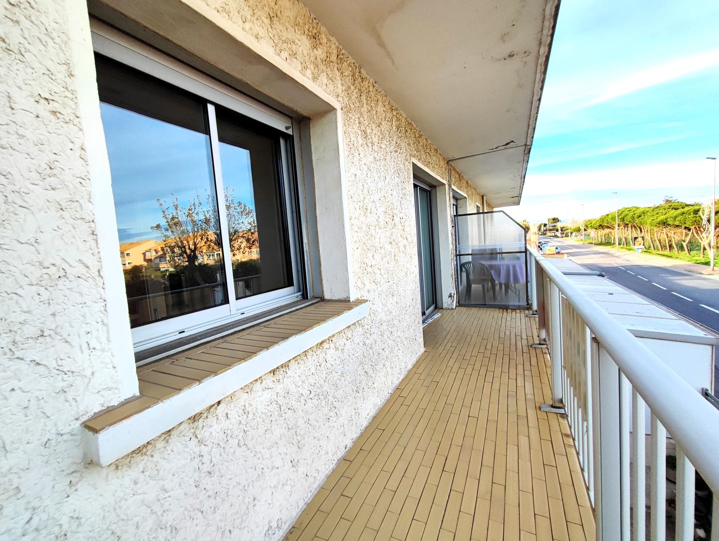Les menuiseries en aluminium à double-vitrage et les volets électriques ajoutent une touche de modernité et de confort à cet appartement.