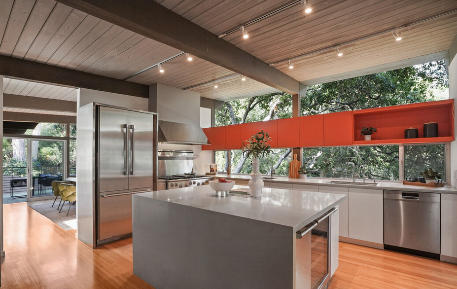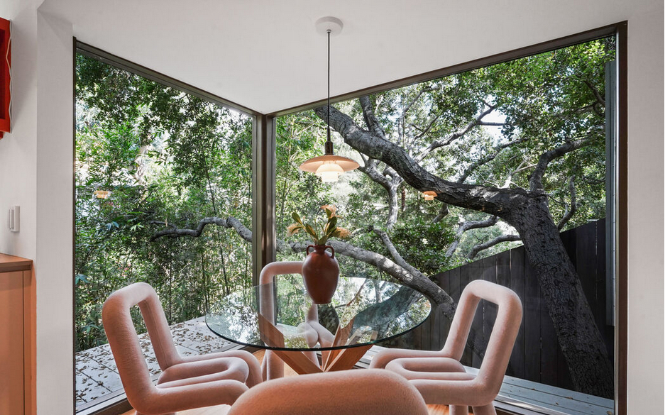L O S AN GELES / U S A / PACIFIC PALISADES: Cachée dans le quartier recherché de Lower Marquez Knoll, decouvrez cette maison de Ray Kappe Post and Beam 1956 qui à beneficié d'une rénovation complète par Barbara Callas avec une inspiration du Bauhaus. Une véritable allégorie architecturale qui s'étend de la modernité américaine du 20e siècle au modernisme du 21e siècle. Entrez dans le jardin clos et descendez face à une piscine élégante et entrez dans le spectaculaire hall de verre. De vastes murs de verre, de hauts plafonds, des angles audacieux et la forte géométrie de la construction Post and Beam de Kappe, tout cela sert à mettre la vie ici en harmonie avec la nature. Une bibliothèque éclairée par le ciel s'ouvre sur un jardin zen paisible, destiné aux matinées méditatives. Le salon, chauffé par une cheminée d'inspiration maya, s'ouvre sur une large terrasse surplombant un ruisseau saisonnier en contrebas. Une belle salle à manger se trouve à côté d'une cuisine ouverte, d'une salle de petit-déjeuner et d'un deuxième salon, d'une cheminée Bravura et d'un autre jardin. La Suite Principale est un tour de force de modernisme vous plaçant au milieu de la canopée. De hauts plafonds et de hauts murs de verre s'ouvrent sur une terrasse privée. Une salle de bains sybaritique ouverte avec des sols en Terrazo, une baignoire élégante, le tout situé dans une salle d'eau qui s'ouvre sur la piscine. Préparez-vous pour votre journée dans le luxueux dressing éclairé par le ciel. Au niveau le plus bas, 2 autres chambres à coucher se trouvent au bord du ruisseau. Un système d'éclairage Hue peut être programmé pour créer n'importe quelle ambiance de couleur. A quelques minutes des écoles de haut niveau, des boutiques haut de gamme, des restaurants, des divertissements et de la plage, ce refuge donne l'impression d'être à un million de kilomètres. DPE: NC, REF INTERUSALA3036, Prix 3 999 000 euros Honoraires à la charge du vendeur