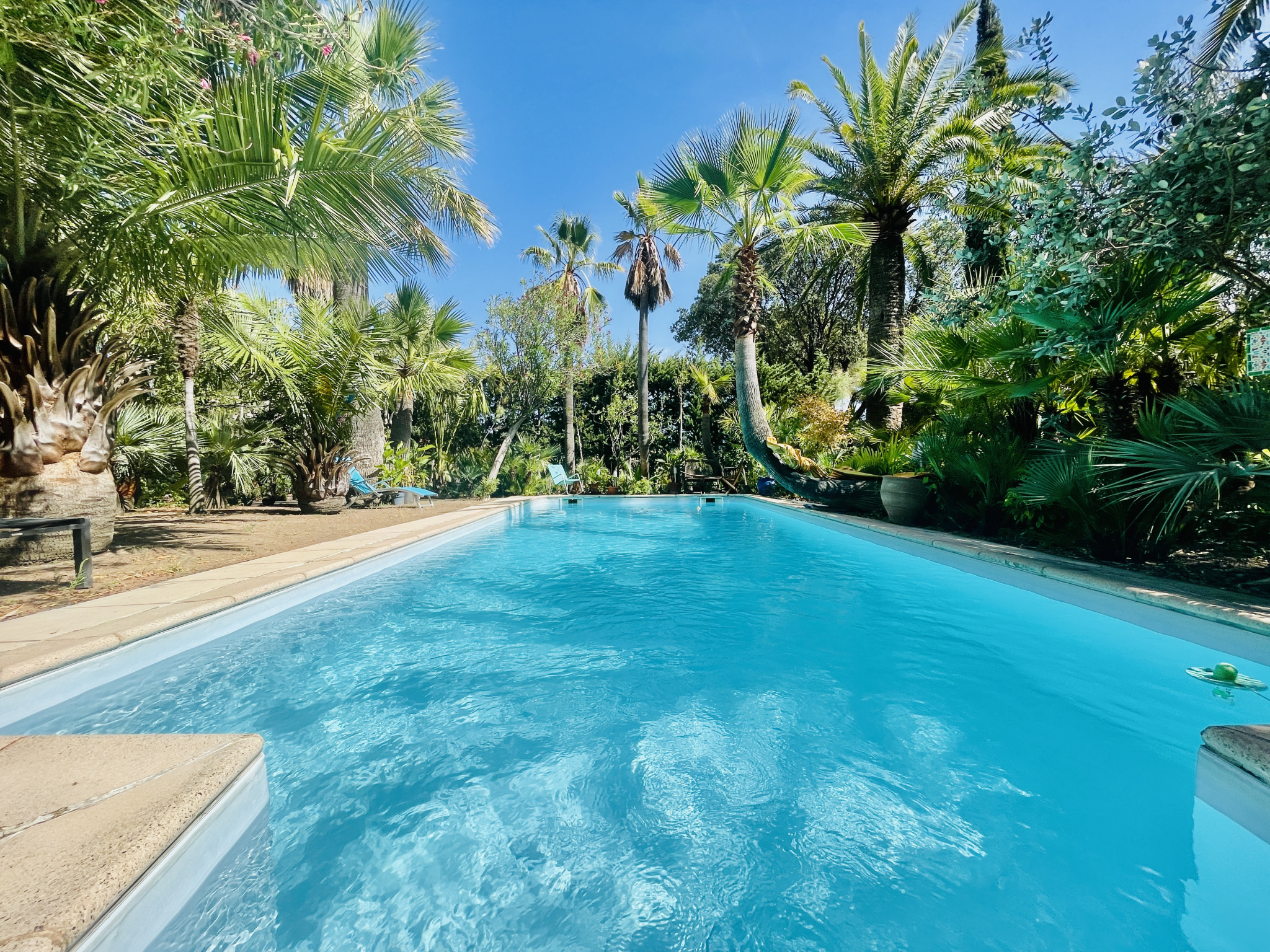 Nichée en plein coeur d'un quartier au calme de SAINT AYGULF, vous serez tout de suite dépaysé par sa palmeraie aux 1000 palmiers, une véritable oeuvre d'art dans un jardin sans vis à vis, une piscine complète le décor.