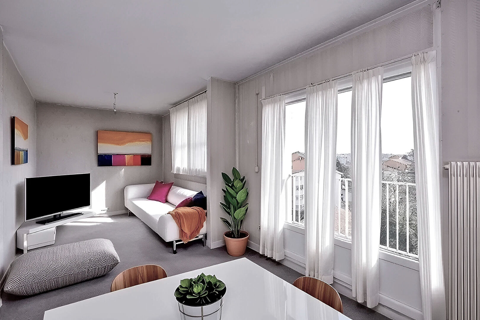 Appartement Villefranche Sur Saone 3 pièce(s) 97.85 m2 Vous chercherez et vous verrez que des appartements de presque 100m2 avec un diagnostique D, ça n'existe (presque) pas. On est sur un bel emplacement, juste derrière la gare, sur une petite rue en retrait peu passante. Séjour de 30m2 orienté Est avec ces fenêtres très hautes qui donne ce style architecturale au bâtiment. Cuisine dînatoire de 31m2, séjour de 30. Et puis deux belles chambres de 10 et 11m2 avec une salle d'eau. Une