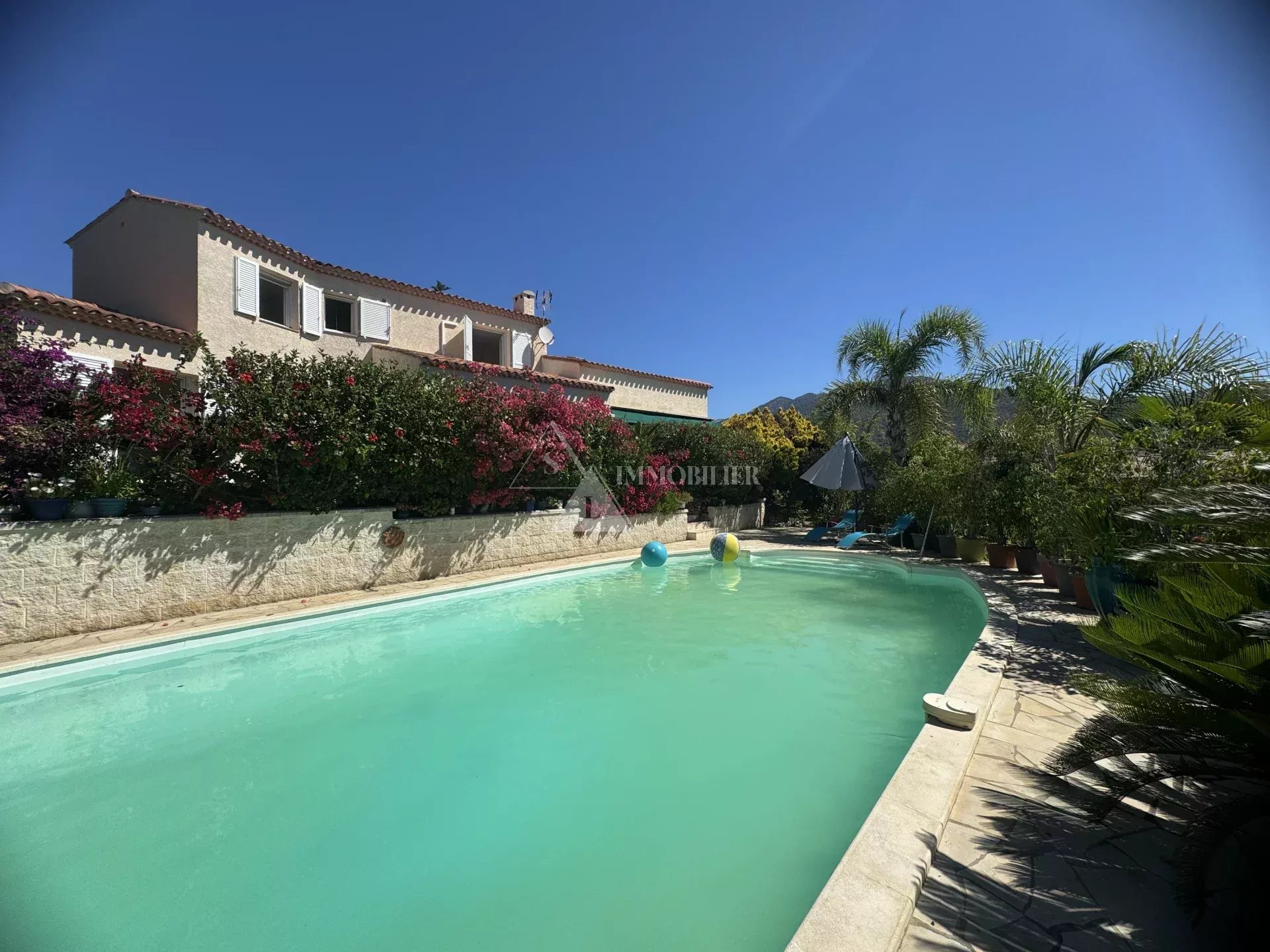 Découvrez à Sagone en bord de mer, cette superbe demeure de 4/5 pièces, d'une superficie de 177 m², nichée sur un vaste terrain de 1410 m². Idéalement située à l'entrée de Sagone, dans une résidence très prisée, cette villa disposant de pièces à vivre très confortable et lumineuses offre une vue imprenable sur la mer dans un cadre paradisiaque. Elle dispose d’un grand séjour avec cheminée de 47 m2, d’une grande cuisine de 20m2 aménagée, de 3 belles chambres dont une parentale, réparties sur 2 niveaux, avec la possibilité d'aménager une 4ème chambre ainsi qu'un grenier, offrant ainsi de nombreuses options d'extension. Le majestueux jardin arboré, où de nombreux arbres fruitiers et essences rares se mêlent aux araucarias et palmiers, crée un cadre idyllique autour de la magnifique piscine au sel de 12 x 6 mètres. À seulement 30 minutes de l'aéroport Napoléon Bonaparte et de la Cité Impériale, et à 200 mètres à pied de la plage, accessible par un portillon, cette maison séduira les plus exigeants, que ce soit pour une résidence principale ou secondaire. Son exposition sud permet de profiter pleinement de la belle et grande terrasse aménagée avec barbecue ainsi que de la piscine, idéale pour se détendre au soleil ou profiter de l'air marin. De plus, la maison dispose d'un forage, garantissant un approvisionnement en eau autonome. Caractéristiques principales : • Superficie : 177 m² habitables • Terrain : 1410 m² arboré • Pièces : 4/5 pièces, possibilité d'aménager une 4ème chambre et un grenier • Séjour : vaste et lumineux de 47 m² • Cuisine : spacieuse et aménagée de 20 m² • Chambres : 3 belles chambres, dont une parentale, réparties sur 2 niveaux • Salle d’eau : 2, dont une très grande • Salle de bain : 1 spacieuse • Garage : 1 garage pouvant être aménagé en 4ème chambre • Grenier : A aménager Extérieurs : • Piscine : magnifique piscine au sel de 12 x 6 mètres • Jardin : majestueux, arboré de nombreux arbres fruitiers, essences rares, araucarias et palmiers • Terrasse : grande terrasse aménagée avec barbecue, exposée plein sud Points forts : • Emplacement : à seulement 30 minutes de l'aéroport Napoléon Bonaparte et de la Cité Impériale • Proximité : plage à 200 mètres à pied • Confort : forage pour un approvisionnement en eau autonome • Cadre : vue imprenable sur la mer, cadre paradisiaque. N’hésitez pas à nous contacter pour de plus amples informations ou pour organiser une visite et laissez-vous charmer par cette propriété unique.