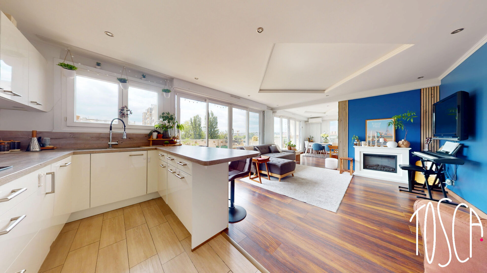 Situé à Choisy-le-Roi, dans le quartier Gondoles sud, calme et résidentiel, ce loft en duplex de 140 m² prend place dans une ancienne cartonnerie réhabilitée en copropriété intimiste. Véritable cocon baigné de lumière, il séduit par son architecture industrielle, ses volumes généreux et ses finitions contemporaines. L'entrée mène à une vaste pièce de vie, sublimée par une belle hauteur sous plafond et une structure métallique apparente qui souligne l'authenticité des lieux.