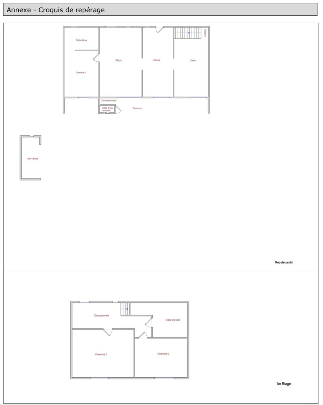 Hall et dégagement pour 10m, CH de 10m, SdeB avec WC aéré de 9m, CH de 13m,