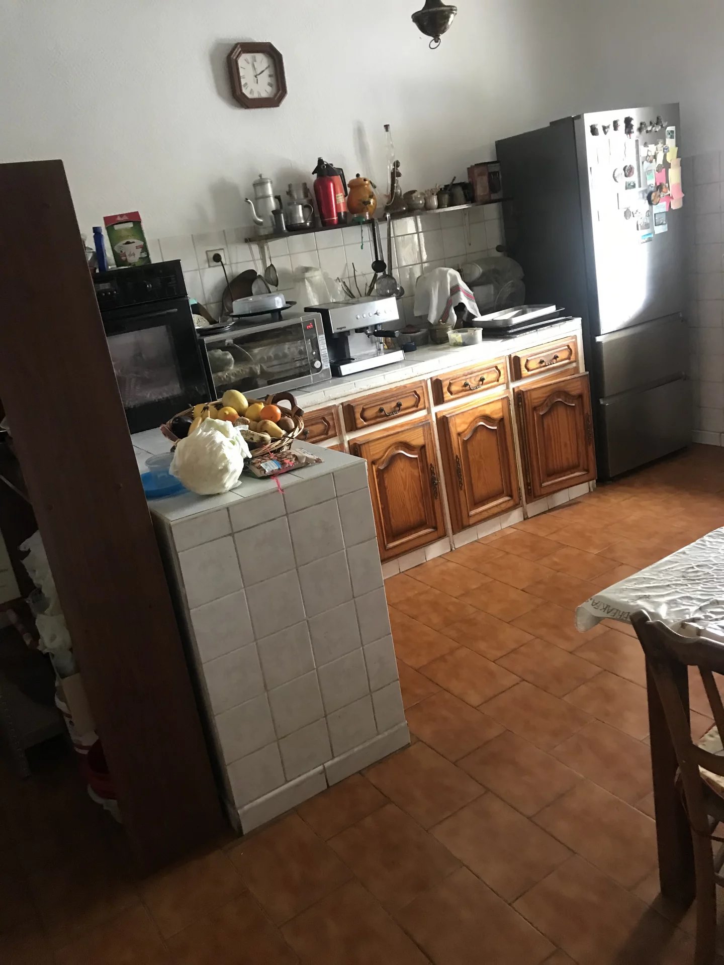 Chauffage gaz propane, carrelage, lambris, poutres apparentes, menuiseries PVC,