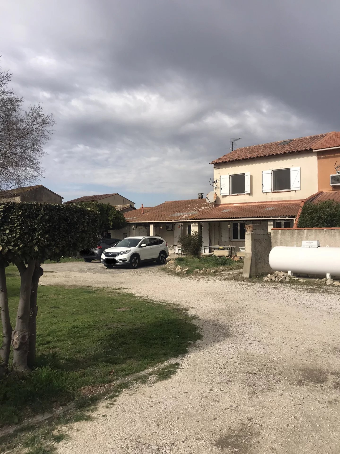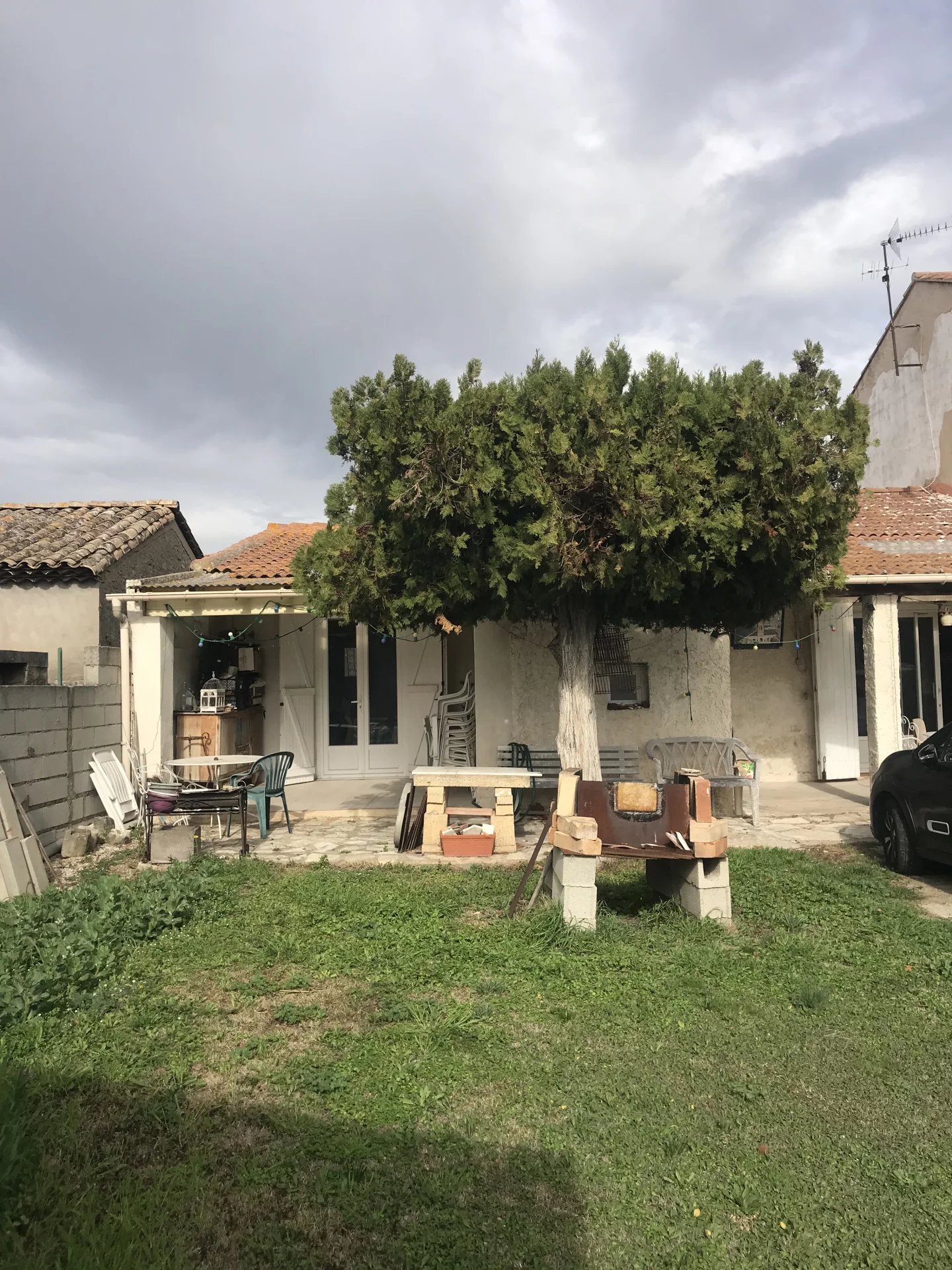 Parcelle de 840m(résiduel 120m)avec abris pour 2 véhicules et dépendances, cour centrale spacieuse, buanderie, point d’eau de 10m et WC, à l’arrière dépendance de 14m avec 37m de terrasse,