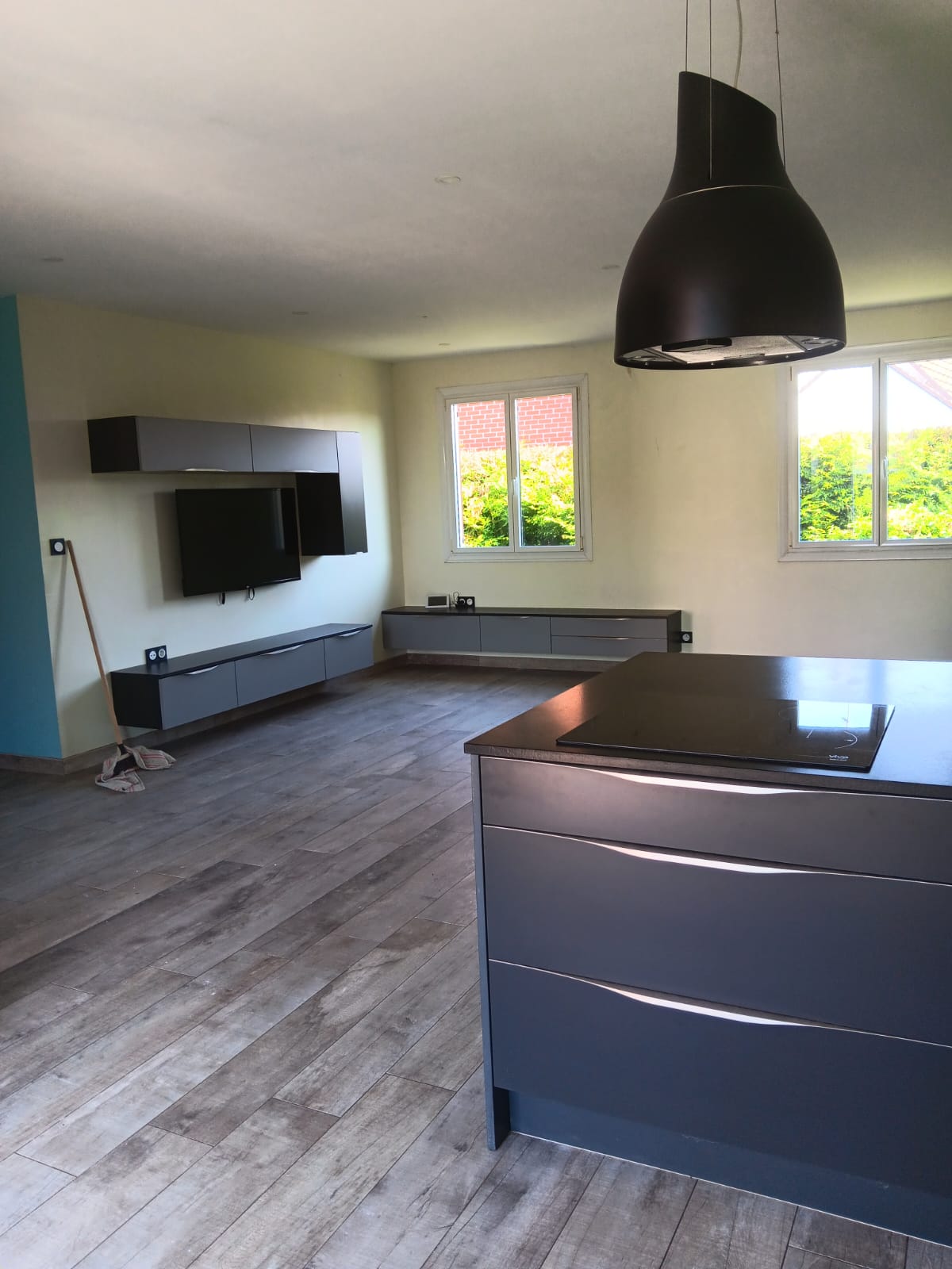 À10 min d'Amiens, dans un village prisé et recherché, une villa de plain-pied sans mitoyenneté d'environ 147 m², comprenant un grand séjour ouvert sur une belle cuisine aménagée et équipée sur une surface de 56 m², 2 chambres dont une avec un grand dressing, une belle salle de bain avec douche Italienne et baignoire, double vasque, meuble de rangement de chez Cuisinella, WC séparé, possibilité d'une 3'éme chambre ou un bureau.