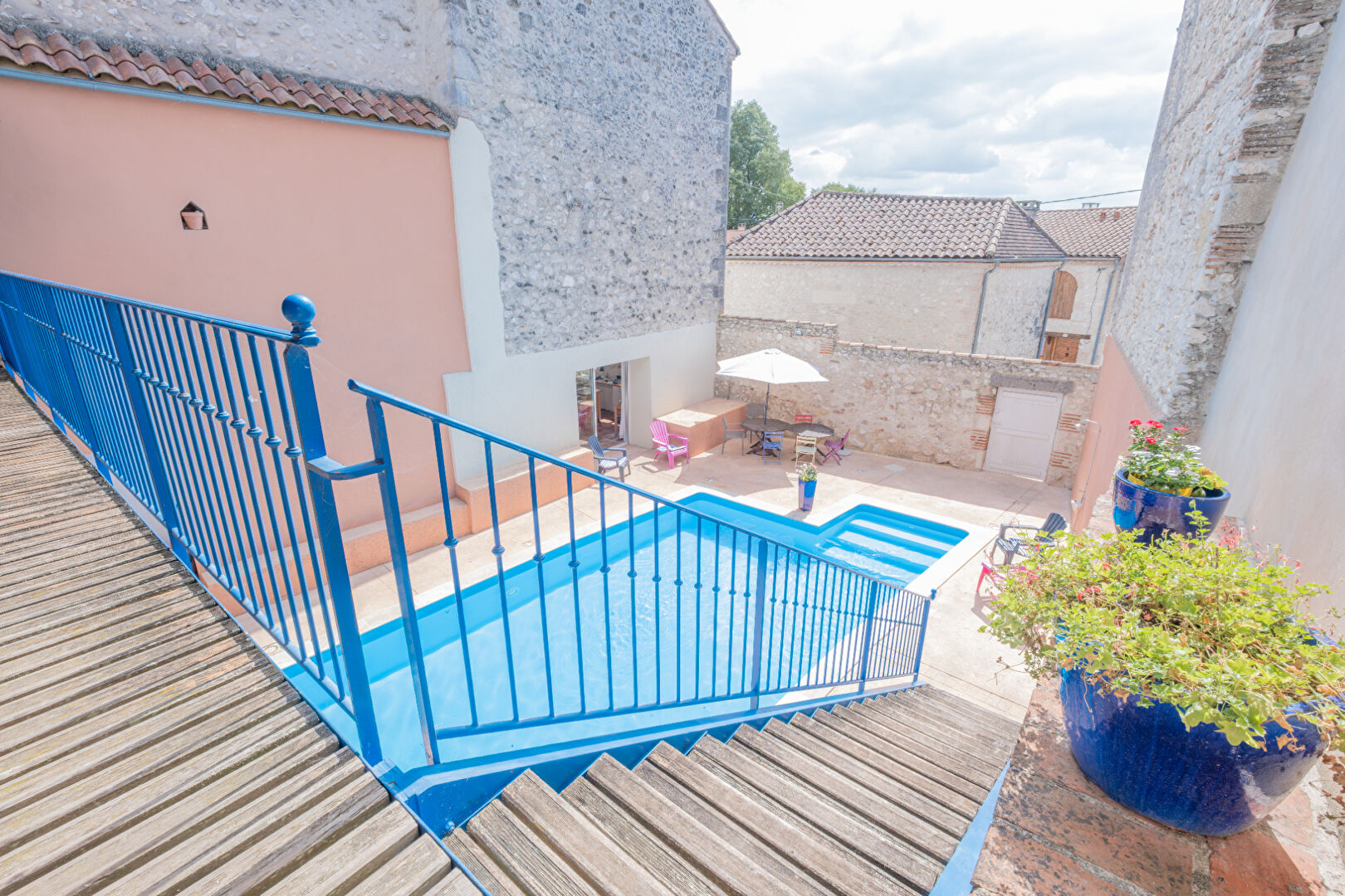Proche de Castelmoron sur Lot, au coeur d'une bastide du XIII° siècle, superbe maison bourgeoise d'environ 329 m² avec cour intérieure et piscine.. Si vous êtes sensibles au charme des vieilles pierres, à la hauteur sous plafond, aux grands volumes, aux rénovations de qualité respectueuses de l'authenticité des anciennes maisons bourgeoises, vous allez adorer ! Cette ancienne maison de notable propose : - une entrée spacieuse avec sol d'époque - une pièce de vie avec cuisine d'environ35m2 (avec accès direct vers la piscine extérieure) - un premier salon avec parquet à chevrons d'origine - un deuxième salon - une grande chaufferie / cave Une piscine prend place désormais dans une cour intérieure, surplombé par 2 chambres d'amis avec salle d'eau et WC. Cet espace privilégié à l'abris des regards participe à la singularité de cette demeure. Le premier étage propose 4 grandes chambres (dont 1 de 41m2 et 1 autre de 27,58 m² ). Un grenier d'environ 202 m² avec hauteur et une charpente magnifique offre un potentiel d'aménagement supplémentaire particulièrement intéressant. Nous serons ravis de vous faire découvrir ce bien d'exception. Les informations sur les risques auxquels ce bien est exposé sont disponibles sur le site : www.georisques.gouv.fr