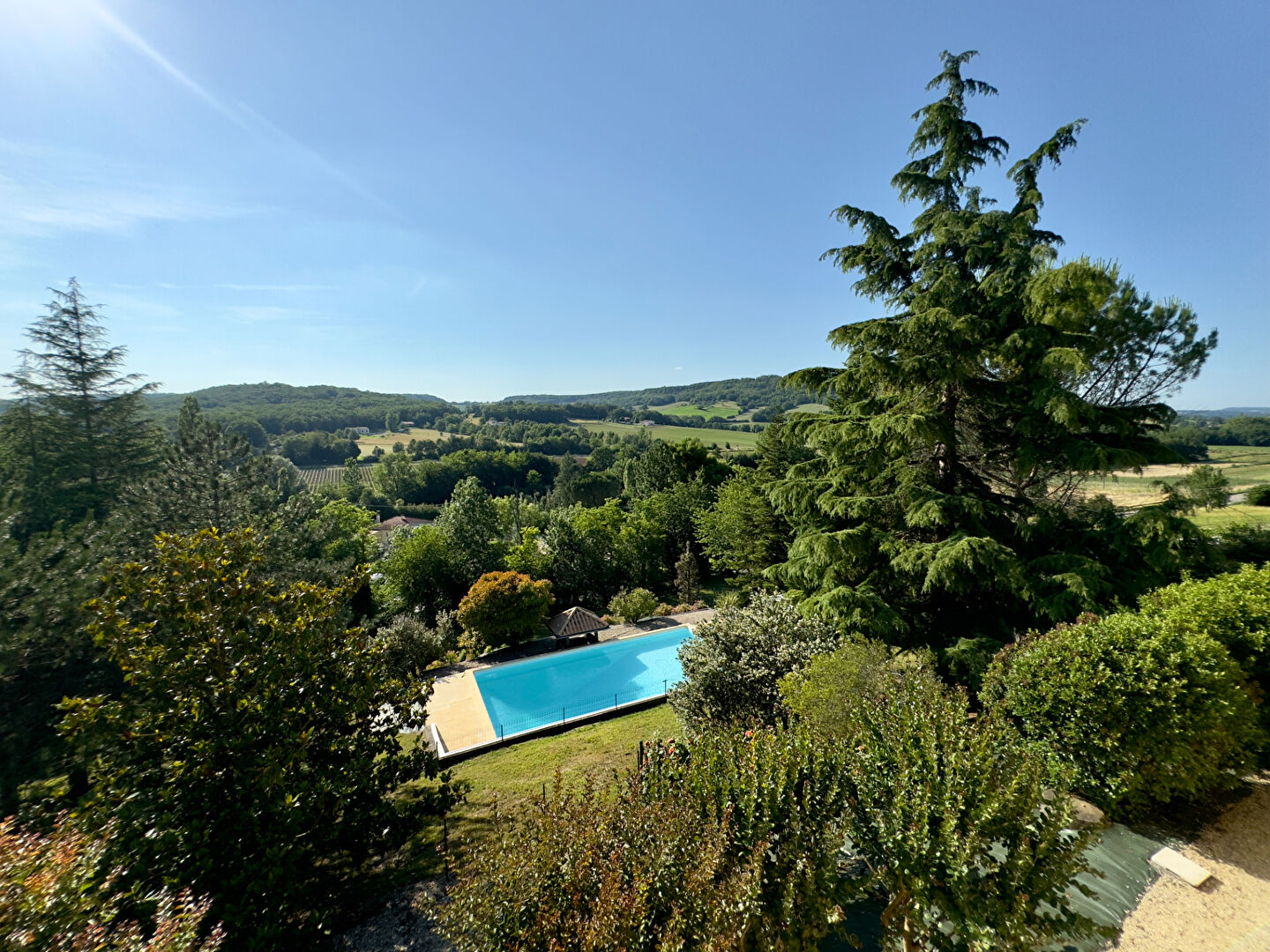 Référence 6333: Venez découvrir cette charmante maison située entre Agen et Villeneuve-sur-Lot, à proximité du village médiéval de Penne d'Agenais, classé parmi les plus beaux de France. Offrant une vue panoramique à couper le souffle, cette propriété vous séduira par son environnement calme et son très bon état d'entretien. La maison bâtie de plain-pied avec une partie semi-enterrée, dispose d'une surface totale de 226 m², dont 146 m² habitables. Nichée au coeur d'un parc très bien arboré et clos de plus de 3300 m², elle est agrémentée d'une belle piscine de 12m x 6m récemment rénovée entièrement( skimmers, Liner, accès). L'intérieur de la maison se compose d'une entrée , le couloir distribue une cuisine moderne équipée avec accès à une terrasse, d'un salon séjour ouvert agréable avec accès au balcon offrant une vue panoramique, Pour la partie nuit, également de plain-pied, trois chambres , une salle de bains et un WC indépendant avec lave-mains. Le rez-de-jardin est en partie aménagé peut servir d'espace d'accueil en plus car il comprend : une grande chambre et une salle d'eau avec WC. Egalement : buanderie, et grand garage d'environ 80 m². Cette maison traditionnelle modernisée et très bien entretenue offre des prestations de qualité : menuiseries PVC bicolores, volets solaires en aluminium, porte de garage isolée en aluminium, isolation récente des combles, portail électrique, performance énergétique de classe C.