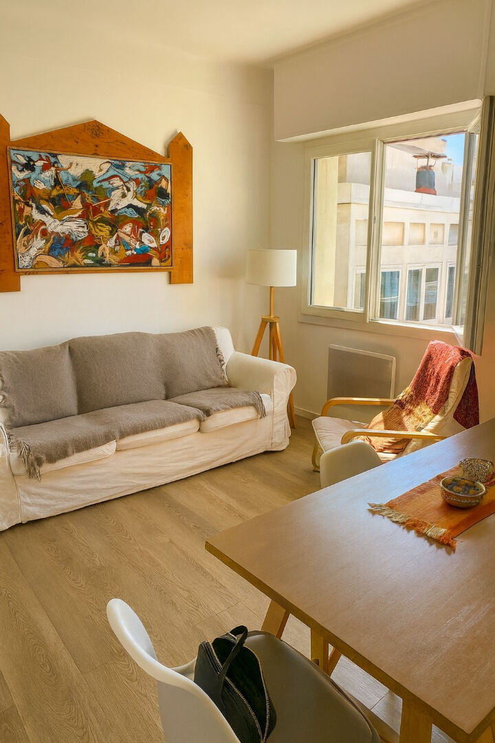 Situé au deuxième étage d'un immeuble de 4 niveaux, cet appartement de 57m² allie charme et authenticité avec ses poutres apparentes au plafond . Il comprend : un grand séjour idéal pour recevoir, une cuisine moderne entièrement équipée, une chambre confortable, et une salle de bain fonctionnelle. Situé dans le quartier du Panier, vous serez à proximité des commerces, restaurants et ruelles typiques.