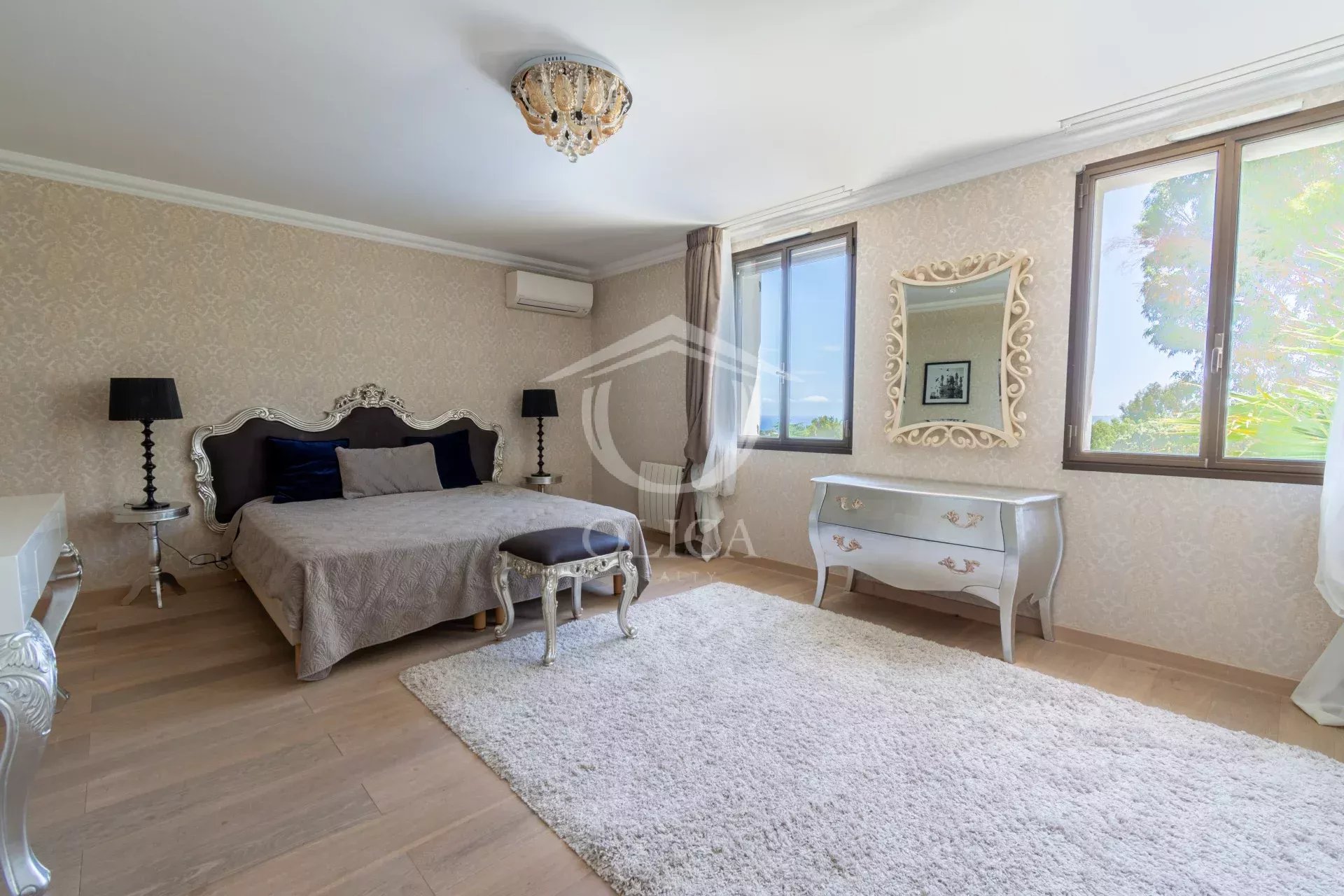 Au sein du fabuleux domaine de 130 hectares des Hauts de Vaugrenier qui comporte 3 lacs, une piscine olympique, 8 tennis, gardiens 24h/24h, une place, des commerces (pharmacie, supérette, boucherie etc...), et une école maternelle publique, venez découvrir cette superbe villa familiale, lumineuse et indépendante de 7 pièces avec 660m² de jardin et une fantastique vue mer, le tout exposé plein sud. Elle se compose d'un hall d'entrée, d'un grand séjour lumineux donnant sur le jardin, d'une cuisine ouverte équipée, d'une chambre de maître en suite avec dressing et salle de bains, de deux chambres avec placards, dressing et salle de bains, d'un grand sous-sol avec home cinéma, bibliothèque, bureau et un espace détente spa avec deux toilettes, une salle de bain, une douche séparée, un sauna et un grand dressing. A l'extérieur vous pourrez profiter d'un jardin avec piscine couverte et chauffée qui vous laissera apprécier une superbe vue mer. Pour votre confort, cette villa est équipée d'un garage attenant avec buanderie. Cet unique domaine privé vous séduira par ses paysages, sa verdure et son calme ! Il est situé à 2 minutes de l'autoroute, à 5 minutes de la gare et de la mer en voiture.