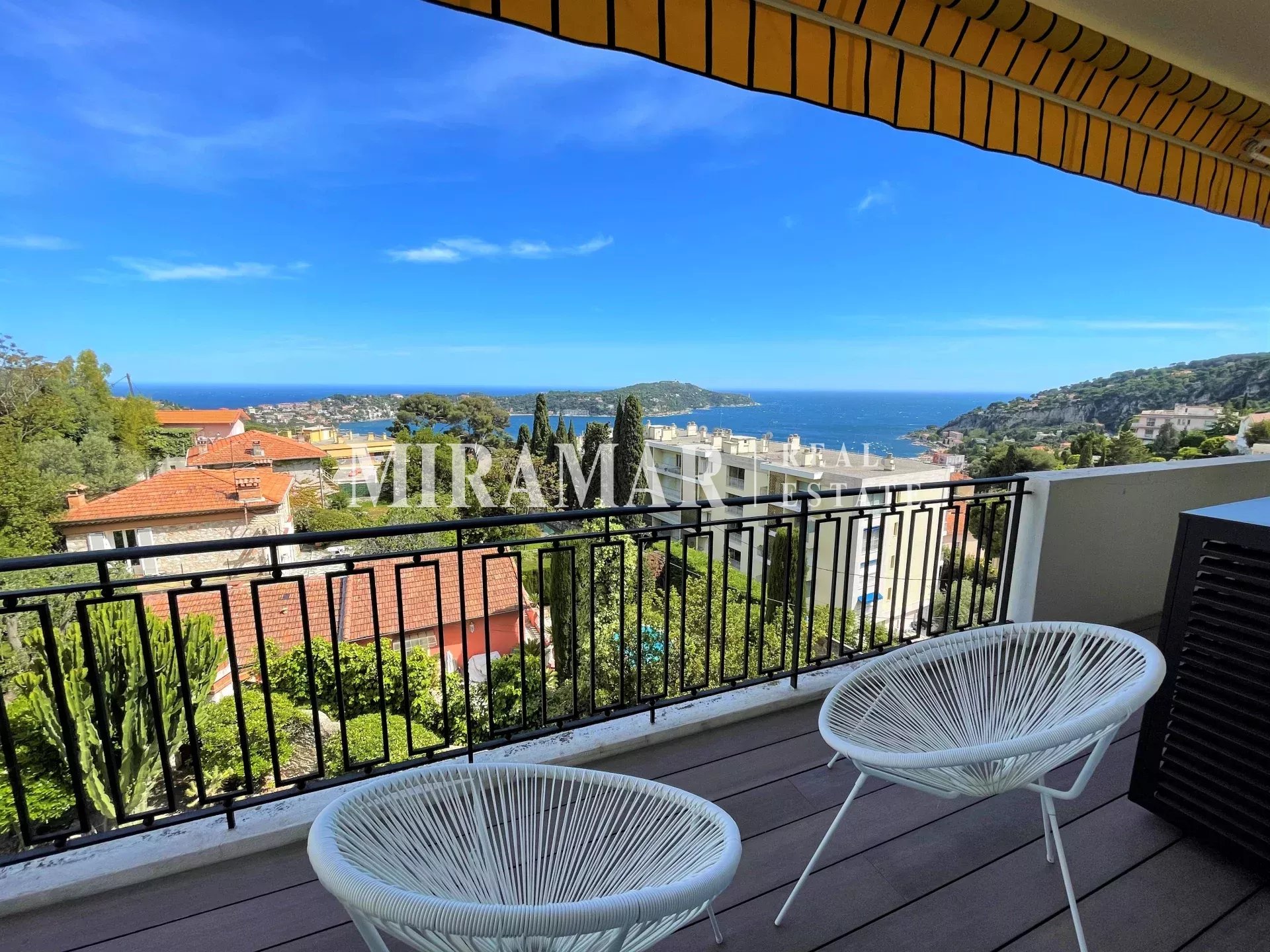 Villefranche-sur-mer Vue panoramique rade de Villefranche et Cap Ferrat pour ce superbe 3 pièces 100 m² habitables et 90,7 m² loi carrez en avant dernier étage dans une résidence de standing. Beau séjour / salle à manger d'angle sur terrasse. Chambre de maitre en suite avec dressing et douche. 2 ème chambre avec coin bureau, 2 ème salle d'eau, belle cuisine indépendante. Prestations de qualité. Parking sous-sol et cave. Possibilité 2 ème parking en supplément