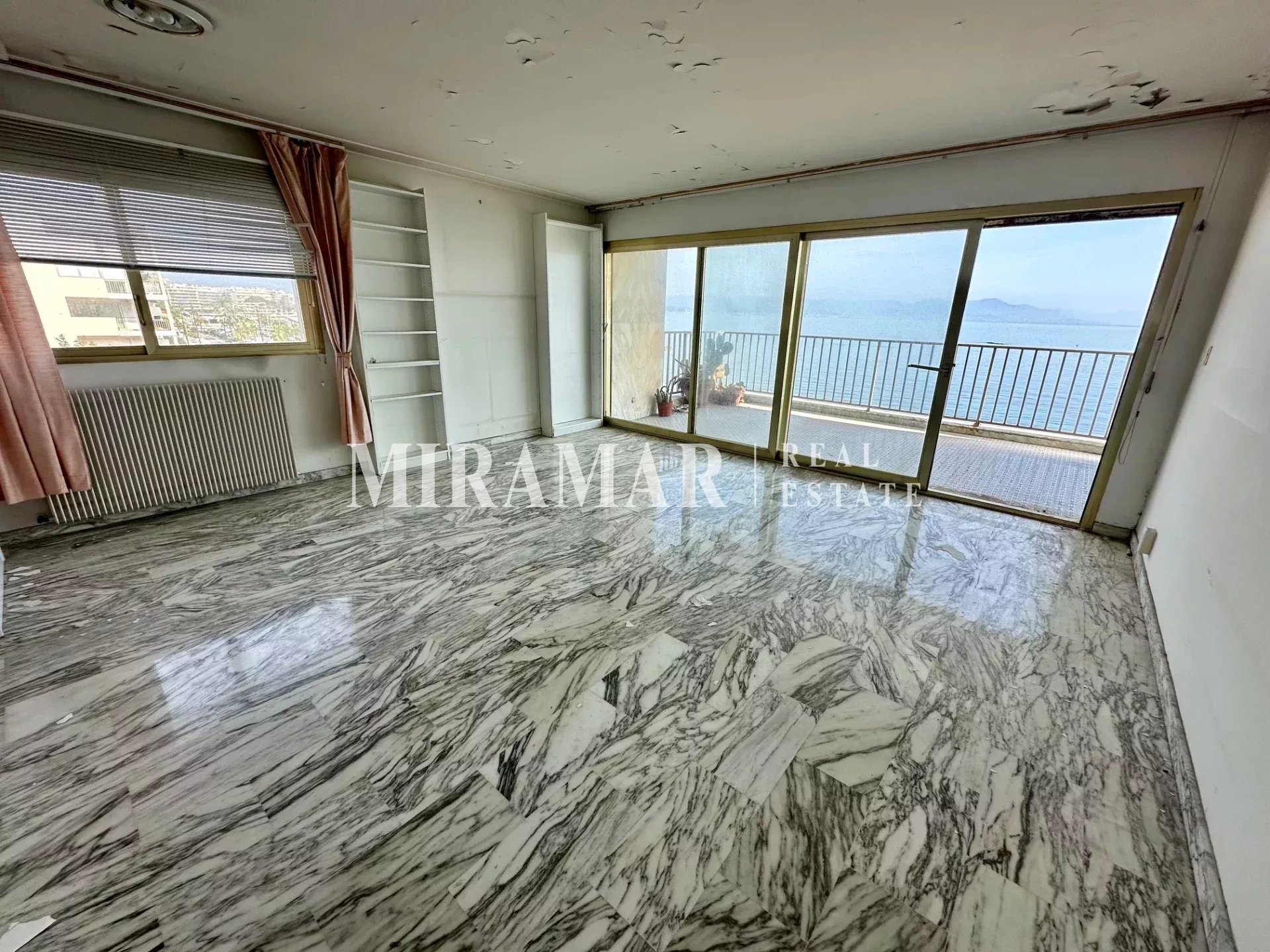 Exclusivité Plage de la Salis / Début du Cap d'Antibes Dans résidence de standing, superbe 3 pièces de 83,5 m² face mer. Situation exceptionnelle face à la plage avec un panorama féerique sur la mer et les collines. Beau séjour d'angle avec cuisine indépendante (possibilité cuisine ouverte), 2 chambres au calme donnant sur la verdure, 1 salle de bain et une terrasse profonde. Garage en sous-sol. Travaux à prévoir.