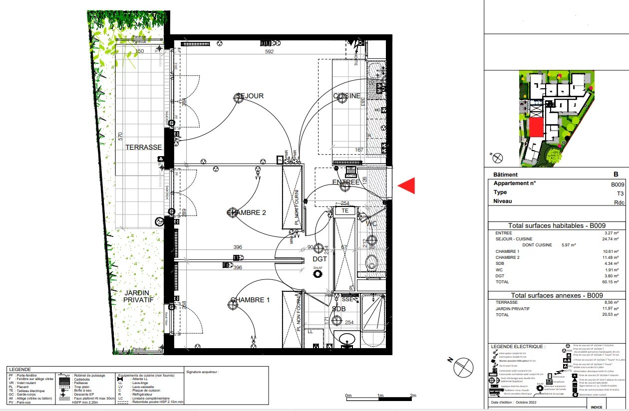 LE PLESSIS TREVISE - PROGRAMME NEUF, l'agence Immobilière Thomas Depresle vous propose dans une résidence neuve, cet appartement 3 pièces de 60.15² en rez-de-jardin, composé d'une entrée, d'un séjour avec cuisine ouverte, donnant sur la terrasse de 8.56m², deux chambres, l'une avec accès à la terrasse, l'autre accédant directement au jardin, une salle de bains et un WC indépendant. Une place de parking en sous-sol. LIVRAISON prévue : 4ème trimestre 2024.