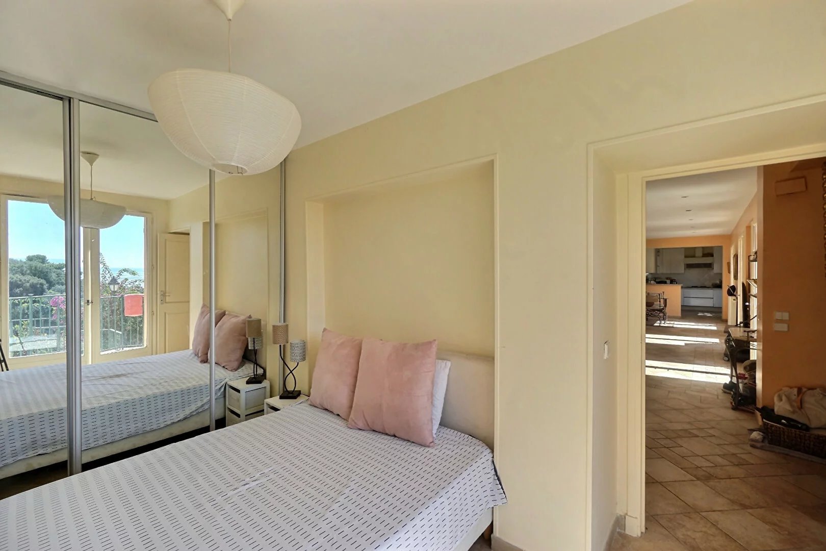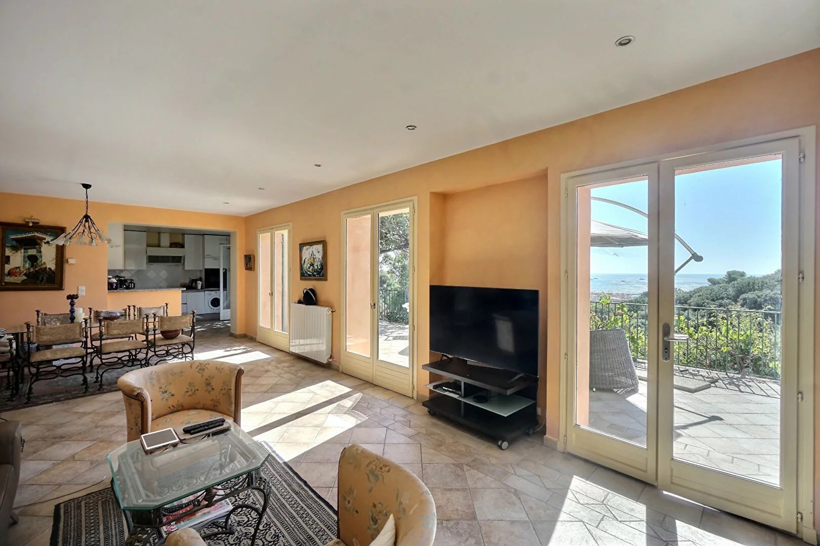 EXCLUSIVITE Dans le quartier des Pertuades, sur un terrain de 919m² avec piscine, villa 6 pièces de 146 m² avec une magnifique vue mer et exposée sud. Au rez de chaussée, la maison dispose d'une entrée, une cuisine ouverte sur un séjour donnant sur une grande terrasse, une chambre, une salle de bains et un wc. L'étage se compose de 3 chambres dont une en suite et une salle de bains indépendante, le tout donnant sur un balcon. Un studio indépendant avec terrasse, donnant sur la piscine, vous offre un espace de vie supplémentaire. 2 places de parkings complètent ce bien.