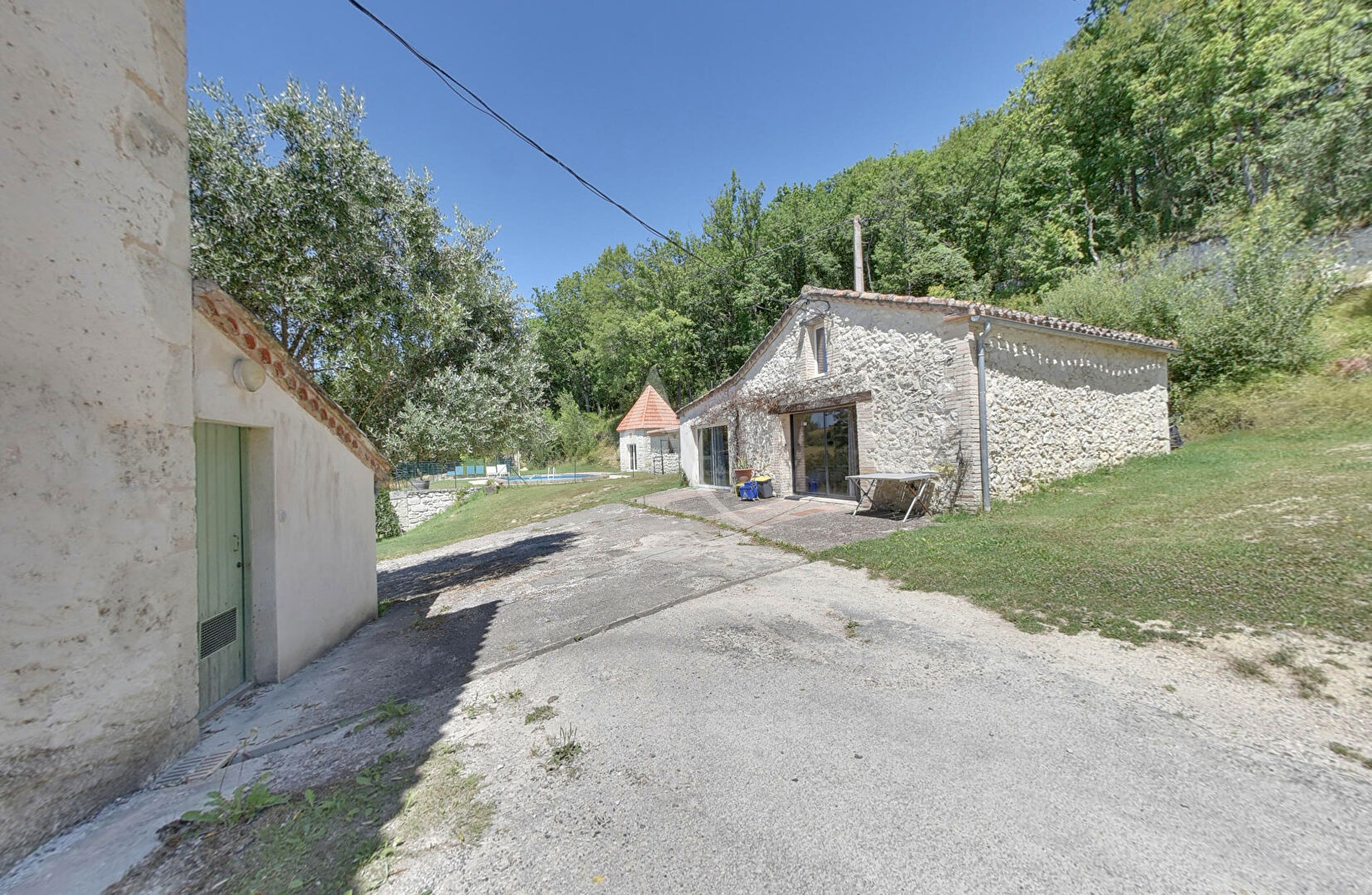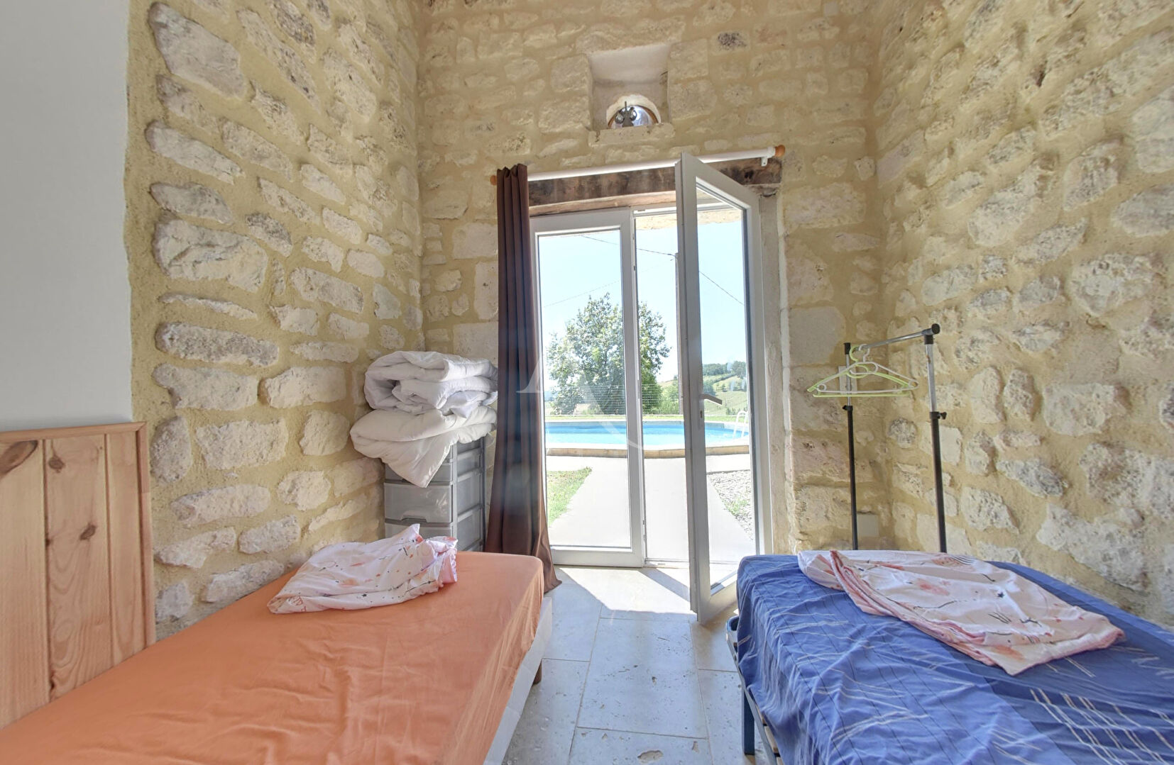 Nichée dans un creux de verdure avec une vue sur la campagne, hors du temps et du bruit, cette propriété traditionnelle en pierres du Quercy saura vous accueillir pour une vie toute en douceur, au plus proche de la nature ! Configurée tant pour une vie familiale que pour une exploitation commerciale ( gîte, accueil de pèlerins de compostelle ), une grande salle de séjour jouxte une cuisine équipée, l'ensemble donnant accès directement sur la terrasse arborée. A l'étage, 3 chambres, dont une avec un accès indépendant, 2 salle d'eau et 2 wc. Grenier totalement aménageable. Sur le terrain de 2,5 hectares se trouve également une dépendance aménagée, composée d'une grande pièce de vie, d'une cuisine séparée et d'une douche, le tout à proximité de la partie piscine. Une seconde dépendance, un peu à l'écart de l'ensemble est composée d'une pièce de vie avec coin kitchenette. Une source naturelle est présente sur le terrain, un puits, un four traditionnel, des parkings, un verger...rajoutent au charme intemporel de l'ensemble. En bon état général, située à quelques minutes en voiture du village de Lauzerte ( commerces et écoles ), N'hésitez pas à nous consulter pour de plus amples renseignements ou pour organiser une visite !