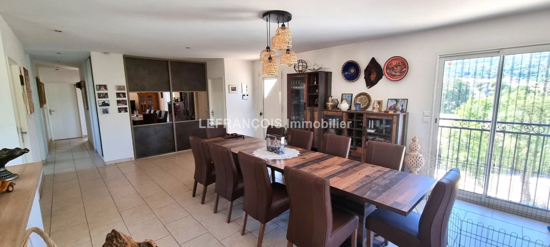 LE TIGNET au calme absolu. Vous serez forcément sous le charme de cette propriété de 210m2 édifiée sur une parcelle de 2200m2 achevée en 2013 et dans un état neuf. Elle propose - au rez de jardin, un studio de 35m2 environ jouxtant un bureau de 25m2, un atelier et un garage, une terrasse couverte de 50m2. - au premier étage, les 150m2 comprennent un vaste espace de vie distribuant la salle à manger, le salon, la cuisine ouvrant sur une terrasse couverte de 50m2. L'espace nuit distribue 3 chambres avec placard et une salle de bain avec baignoire balnéo et douche à l'italienne. Un toilette indépendant et une buanderie complètent le tout. Nombreux atouts : - vue dégagée - calme - climatisation - panneaux solaires - vaste carport avec possibilité de stationner un camping car - vide sanitaire - Piscine 9.5 * 4.2 couverte - clôture , accès sécurisé - excellent DPE, maison quasiment en auto consommation. - ETAT IRREPROCHABLE Possibilité d'accueillir deux familles ou chambres d'hôte. !! COUP DE COEUR ASSURÉ !!