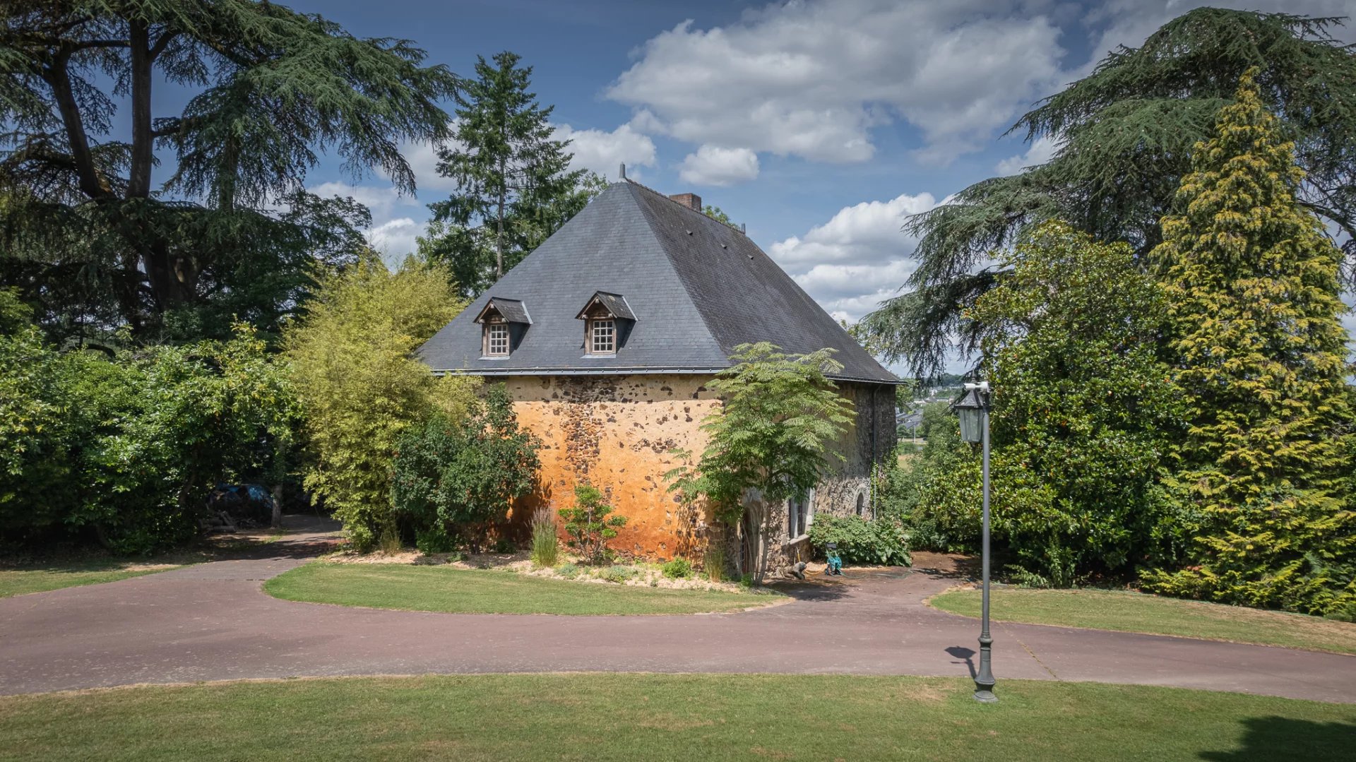 Laval (53) 1h15 de Paris 3 kms d’un aéroport international Chateau avec une histoire en bord de rivière au milieu de 17 ha Prix et infos sur demande