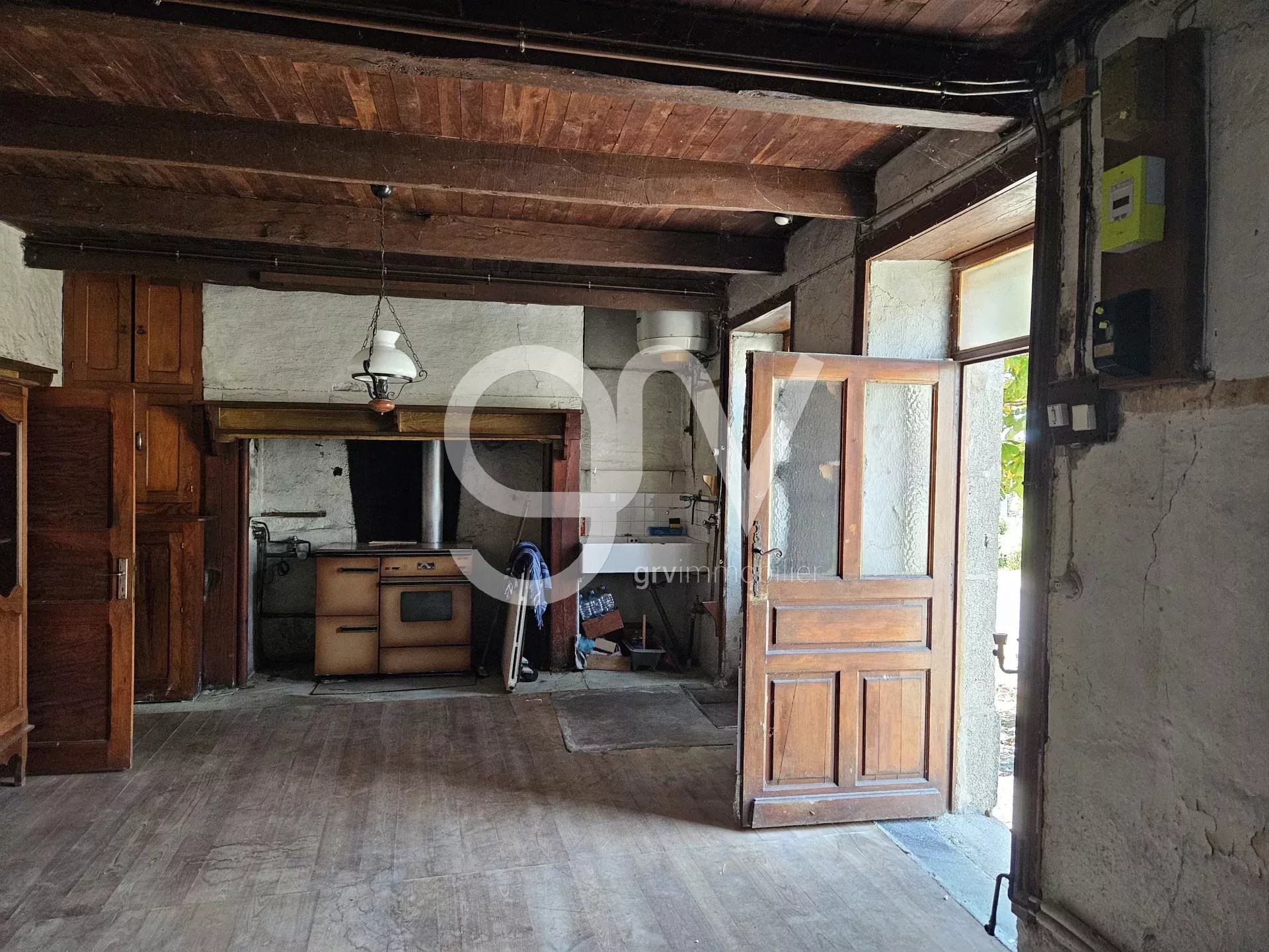 Ancienne maison de village à restaurer avec son appentis, et son garage à usage de stockage/débarras. Dans un petit village au charme tranquille, cette petite maison (mitoyenne) compte 95 m2 habitables, avec: - une pièce de vie en rez-de-chaussée avec une cheminée et une cave semi-enterrée à l'arrière - un étage comptant 4 pièces dont 2 grandes chambres et deux pièces plus petites (chambre de service ou bureau) + salle de bain - l'étage donne accès à un appentis arrière, seul espace sur l'extérieur le tout est complété d'un grenier libre (avec possibilité de l'aménager), et d'un petit garage contigu à la maison, mais étroit (10 - 12 m2 environ). La toiture de la maison est en état. La maison est raccordée au réseau d'eaux usées du bourg. Travaux de rénovation à prévoir. Il existe un chauffage central depuis la gazinière bois installée dans la cheminée, avec radiateurs fonte au RC et acier à l'étage. Mix simple et double-vitrage au niveau des menuiseries extérieures. A noter que la maison peut être vendue avec un petit jardin (1150m2 env.), accessible à 3min à pied. La maison est à quelques dizaines de mètres de nombreux services et commerces : supérette, boulangerie, maison de santé (médecins, dentiste, kinés, infirmières, ostéo, orthoptiste, ...), pharmacie, coiffeuse, garage avec pompe à essence, etc...