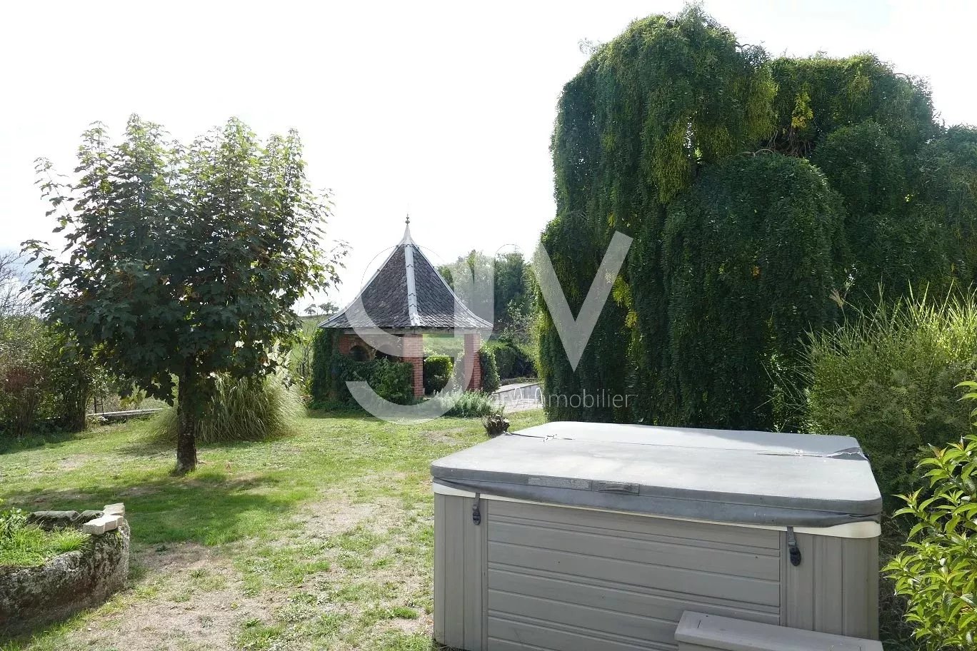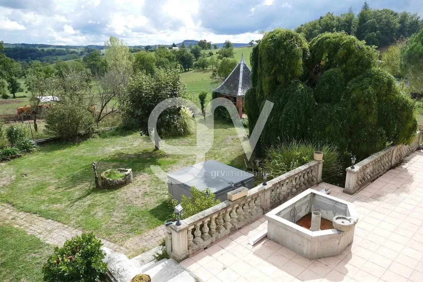 Sur les hauteurs de Maurs avec une vue imprenable sur la campagne se situe ce bel hôtel particulier de la fin du XIXème, de 250m2 habitables environ. Situé sur une parcelle de 2000m2 environ, vous serez séduit par son parc clos et arboré sur lequel vous trouverez une piscine (à restaurer), une cuisine d'été avec barbecue et four à pizza, un spa, des dépendances et 2 puits. La maison, bâtie en pierres et recouverte d'ardoises, permet de profiter pleinement de la grande terrasse surplombant le parc. RDC (145m2 environ) : cuisine, salle à manger, grand salon avec bar, chambre, SDB, bureau, WC 1er étage (65m2 environ) : 2 chambres avec dressing, remise, SDB, WC 2ème étage (40m2 environ) : 1 chambre avec SDB, 2 greniers Sous-sol : cave, buanderie, chaufferie Grand garage (4 voitures) Tout à l'égout. Chauffage : 2 inserts + chauffage central fioul (2000L de conso annuelle). Maison à rafraîchir, mais un véritable havre de paix en bordure de Maurs.