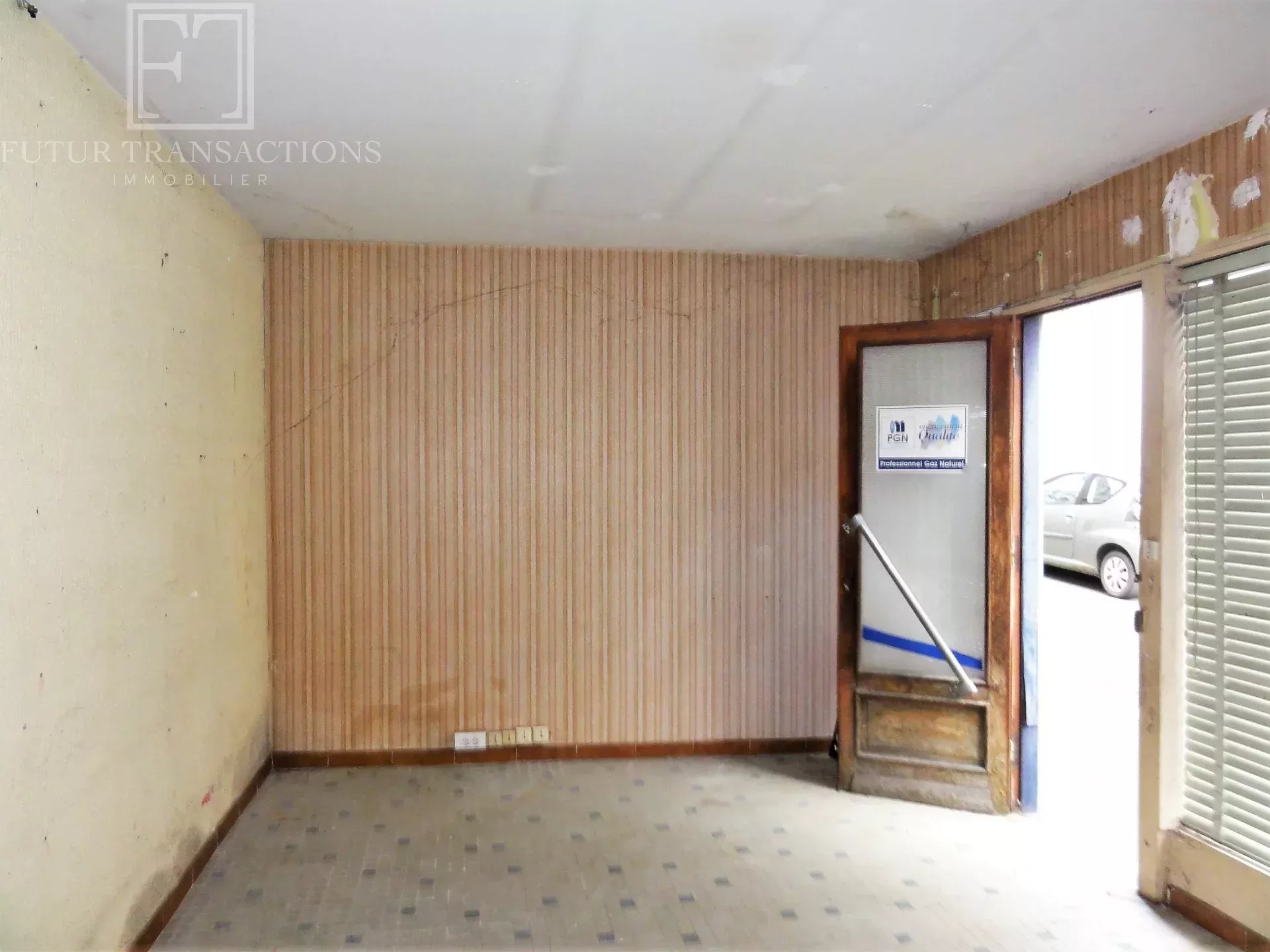 Nontron, maison de ville comprenant un logement de 72 m² au premier étage, jardin sur l'arrière et local et garage en rdc. Maison de 2 chambres, pièce de vie avec coin cuisine, salle d'eau et wc. Chauffage central gaz de ville et tout à l'égout.