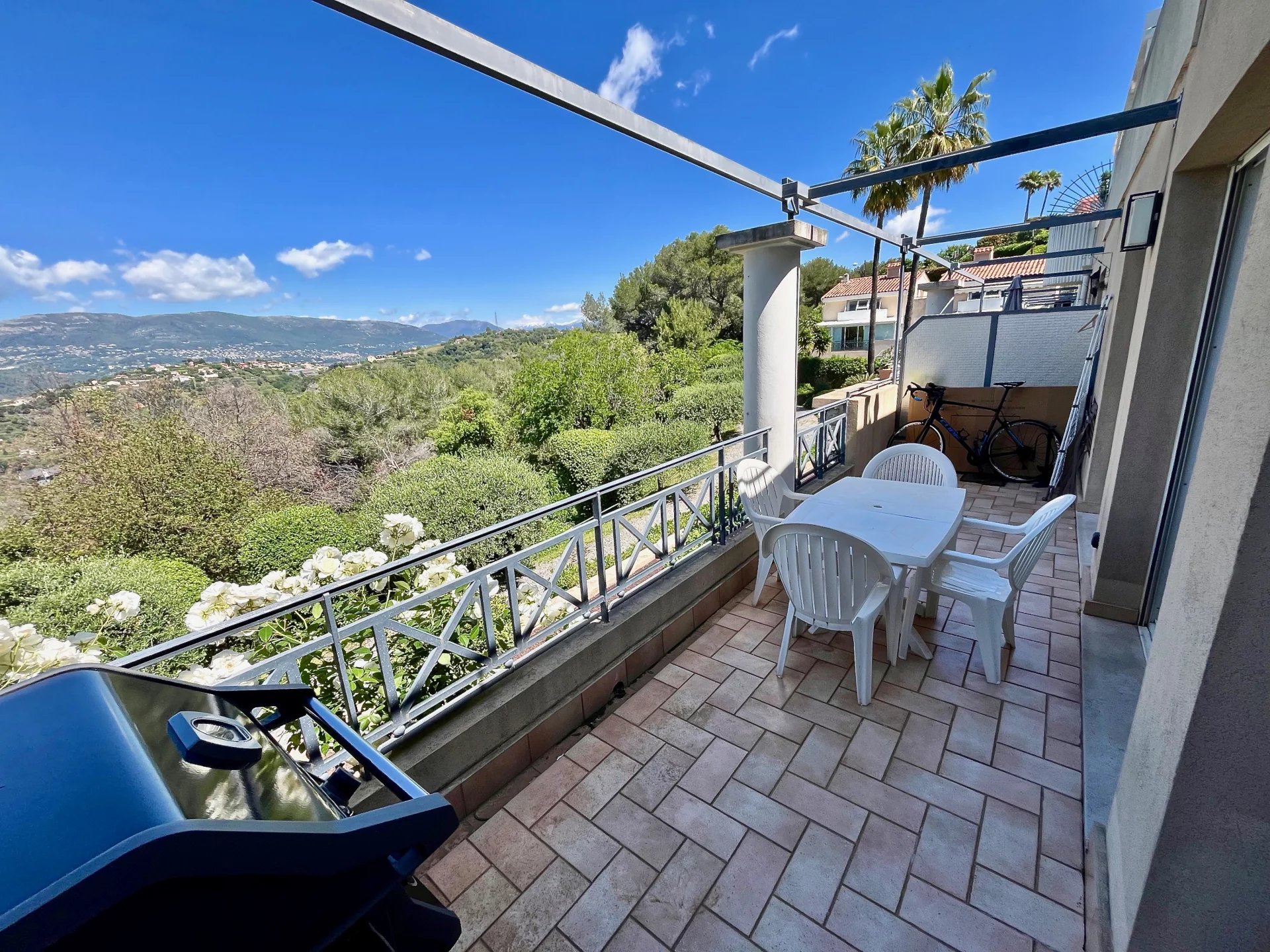 3 pièces dans petite copropriété de bon standing, proche écoles, commerces et bus. Au calme 3P 65 m² avec deux terrasses et double exposition. Il possède de très belles prestations, climatisation réversible, cuisine équipée avec coin repas, salle d'eau à l'italienne avec fenêtre. Toutes les pièces principales accèdent sur une des deux terrasses. Il offre une vue panoramique sur les montagnes, les Baous de Saint Jeannet, ainsi que sur les jardins de la copropriété admirablement fleuris. Une spacieuse cave complète ce bien ainsi qu'un parking privé.