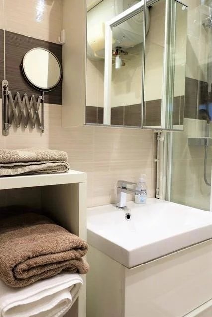 STUDIO offrant de belles prestations et une rénovation de qualité ayant conservé le charme des poutres, pierres apparentes et belle hauteur sous plafond. UN ESPACE CLEF EN MAIN ET OPTIMISÉ. Entièrement meublé et équipé avec soin, il propose une pièce de vie avec un espace nuit (lit mural rabattable qui se range verticalement contre le mur pour libérer de l’espace), une cuisine ouverte, une salle d'eau avec WC. Climatisation, volets électriques. Parfait pied à terre dans un quartier en pleine effervescence du Haut Marais. Cage d'escalier et ravalement votés. Le calme au coeur de la ville! DPE : D Pour toute visite ou renseignements complémentaires contacter votre agence immobilière du 3ème arrondissement L'AGENCE DES ARTS ET METIERS au 01 44 61 04 04
