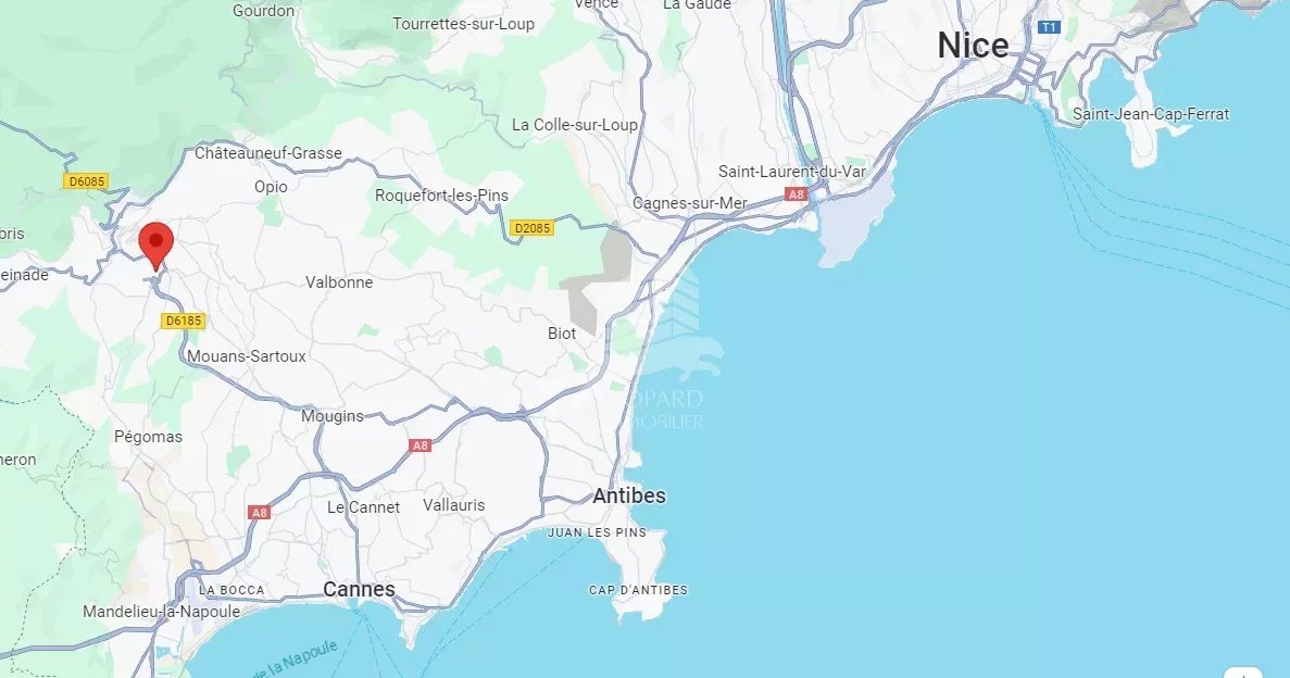 A proximité de la pénétrante menant au centre de Cannes en 25 min, 20 min de Sophia Antipolis et 30 min de l'aéroport de Nice.